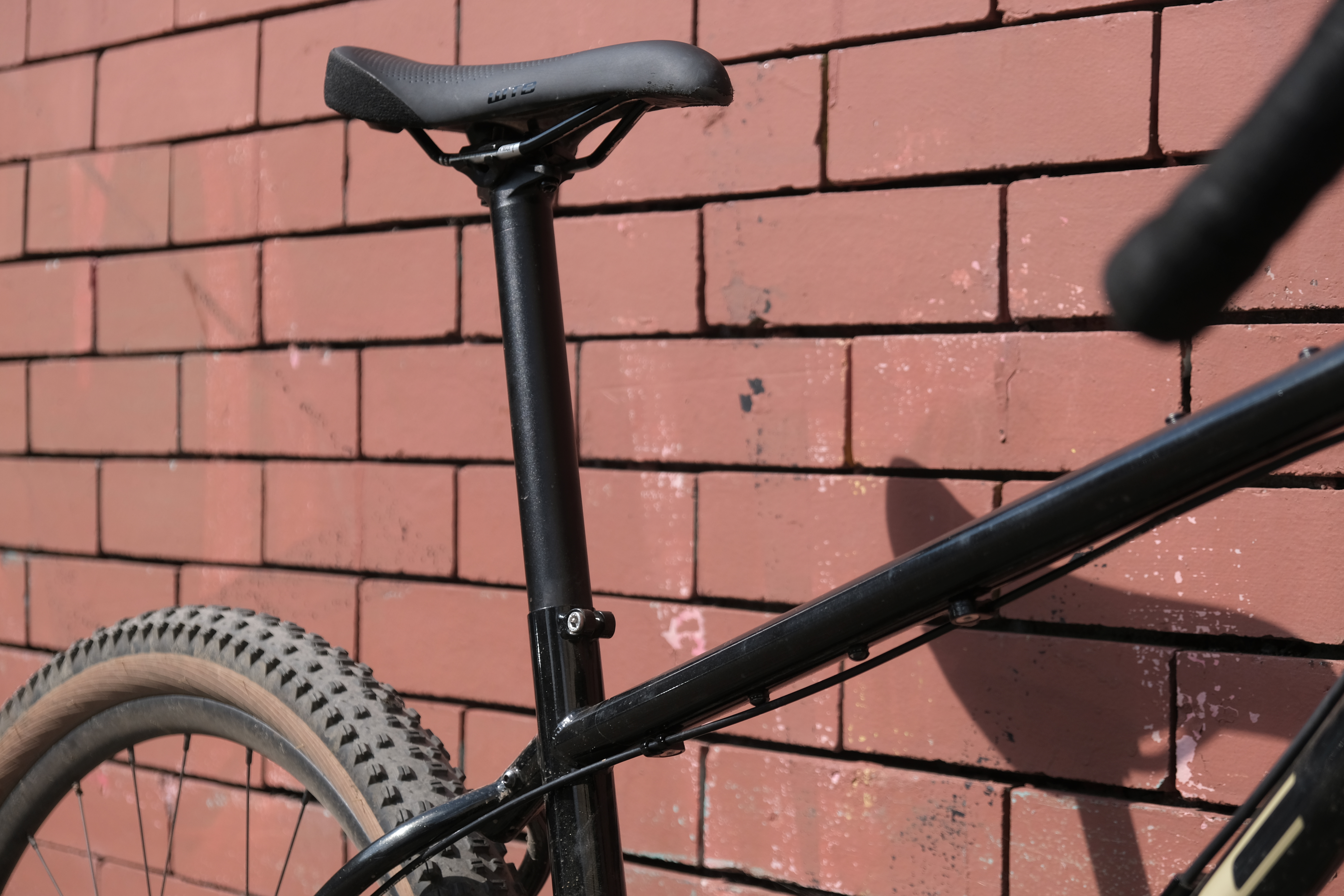 The standover is low enough to make riding more technical trails fun – or getting your leg over a heavily loaded bike a bit easier. It’s not so low however that you can’t fit a frame bag in there, although I found I had to choose between frame bag and double bottles inside the frame. I suspect with more careful compact bottle choice, and perhaps some side loading bottle cages, this could be overcome.