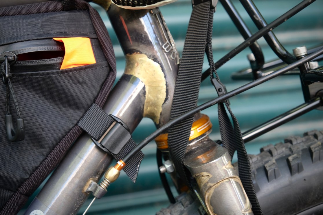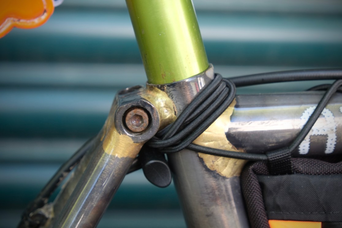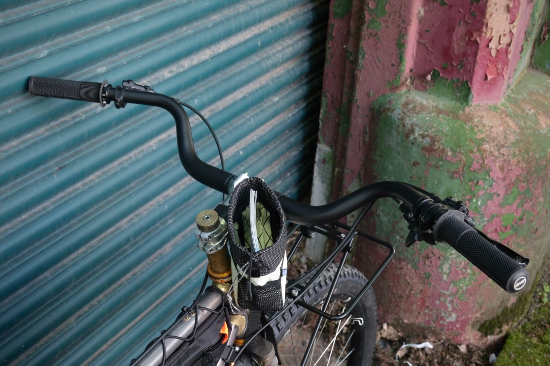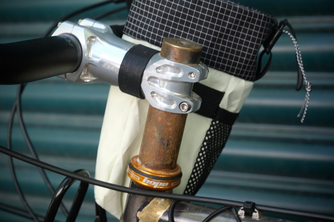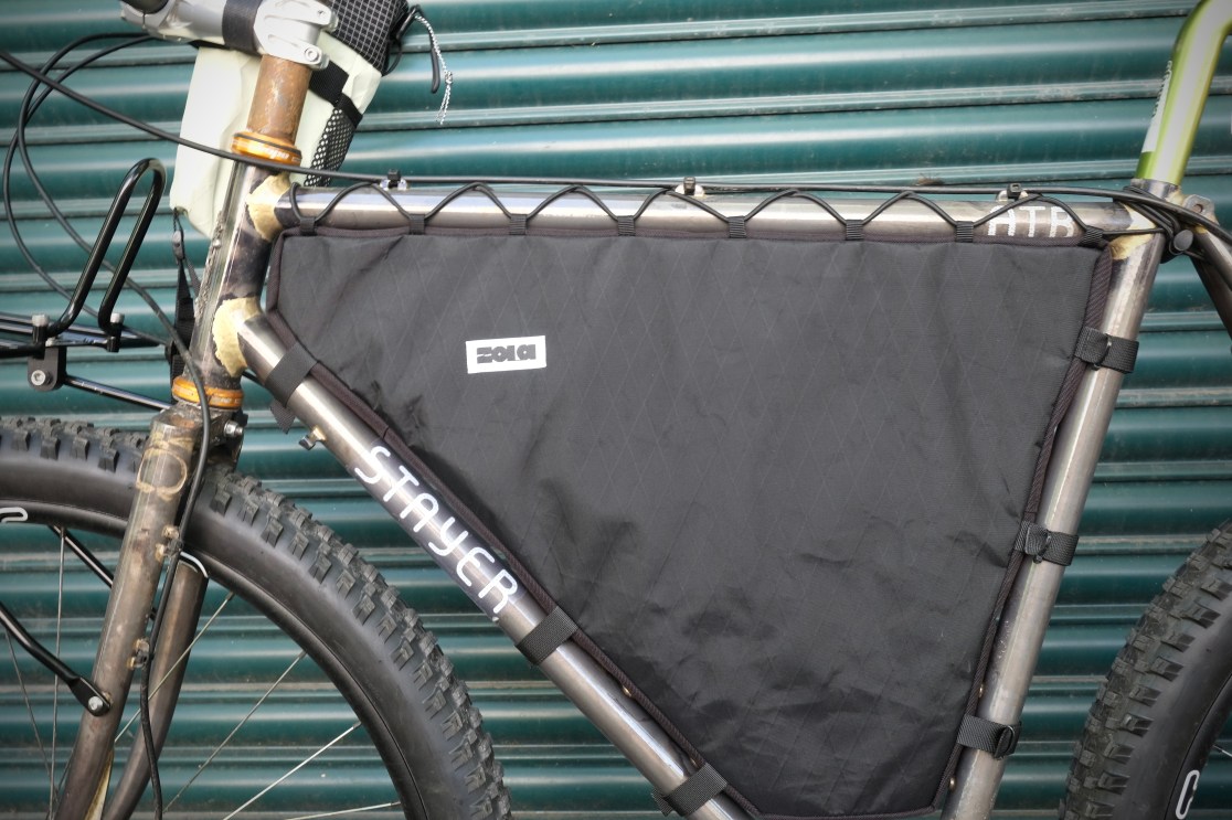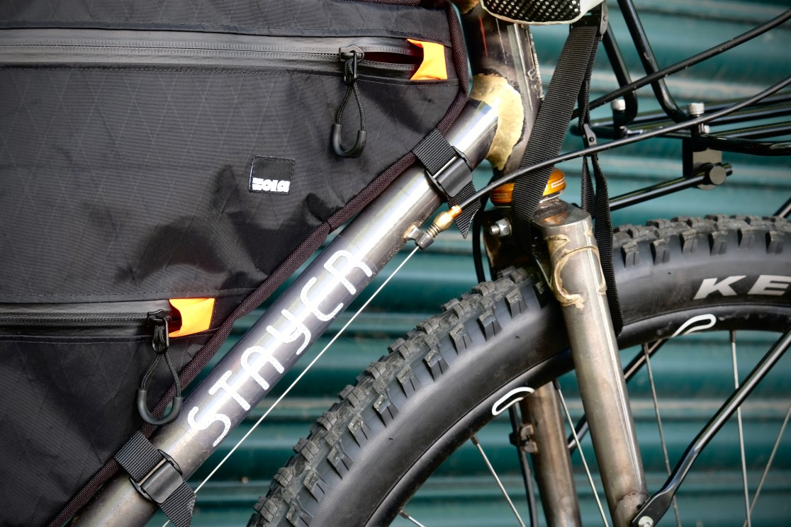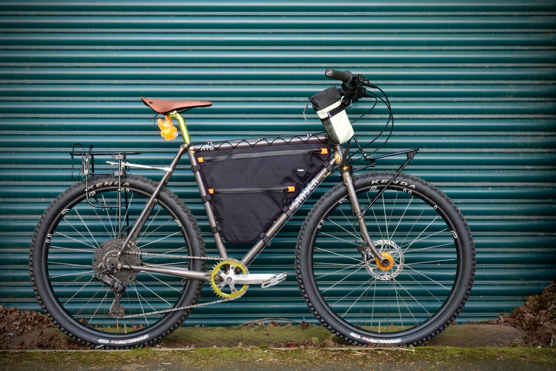 The frame bag is also by him. He made this for me a few days ago, just because I wanted it ready for the show. I’m really excited to start tinkering with it.