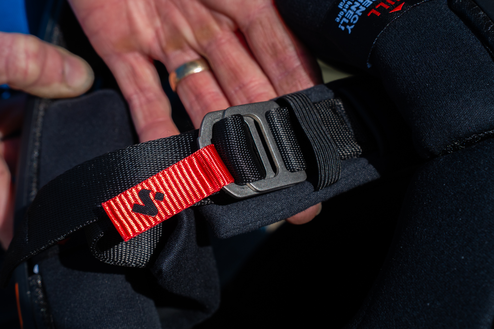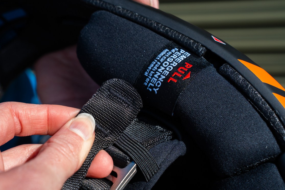 Oof. This is a fancy full affair. You know something is pretty full-on when it has titanium Double-D rings! What else? 2-layer Mips Safety System, carbon shell, hardshell glassfiber helmet, multi-density EPS Impact Shields in front and rear,