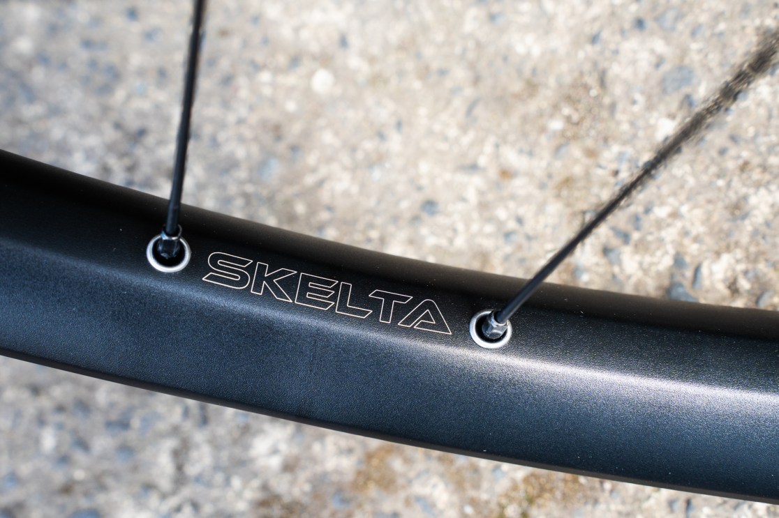 We listed these in our recent Best Bits of Core Bike Show. The new Skelta wheelset is built using 6069 T6 heat-treated aluminium with a seamless welded join, shot-peened surface, 30mm internal width, hooked rim, triple butted J-bend spokes and the rear has the MT Supadrive hub with 120 points of engagement AKA 3°. We weighed ’em: 2,240g.