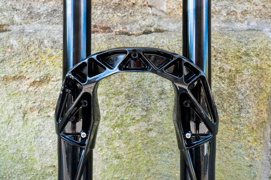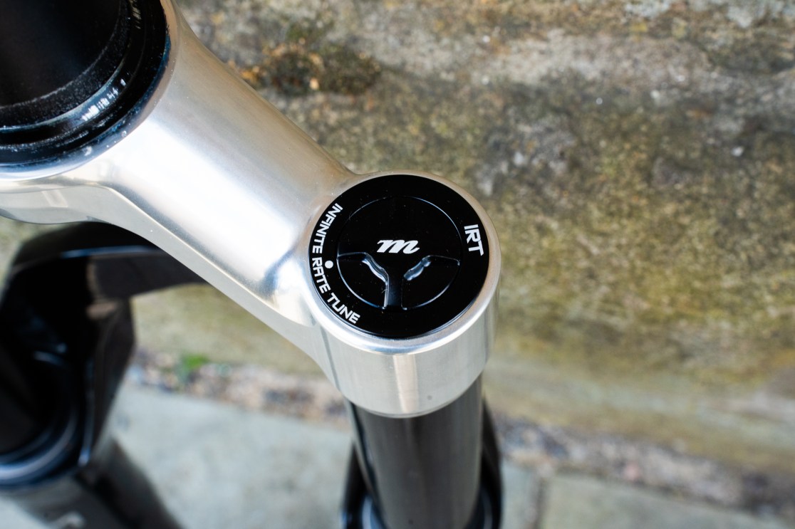 Yeah baby! At this point I should probably excise some facade of professional impartiality and calmness. But the fact is I am a massive Manitou fanboi. The venerable brand’s IRT (infinite rate tune) was a totally pioneering concept and one that arguably went over too many people’s heads when it came out. Essentially a system with two positive air chambers that offers the ability to isolate how you want different parts of the stroke to behave. And that’s besidses/before the damping circuits come into play. Manitou forks are also typically way stiffer than other forks with the same stanchion diameter (34mm in this case). And the reverse arch and angular crown looks rad. Which is nice. The Mattoc can be fairly easily changed to different travels by a home mechanic too, this one is now set to 150mm.