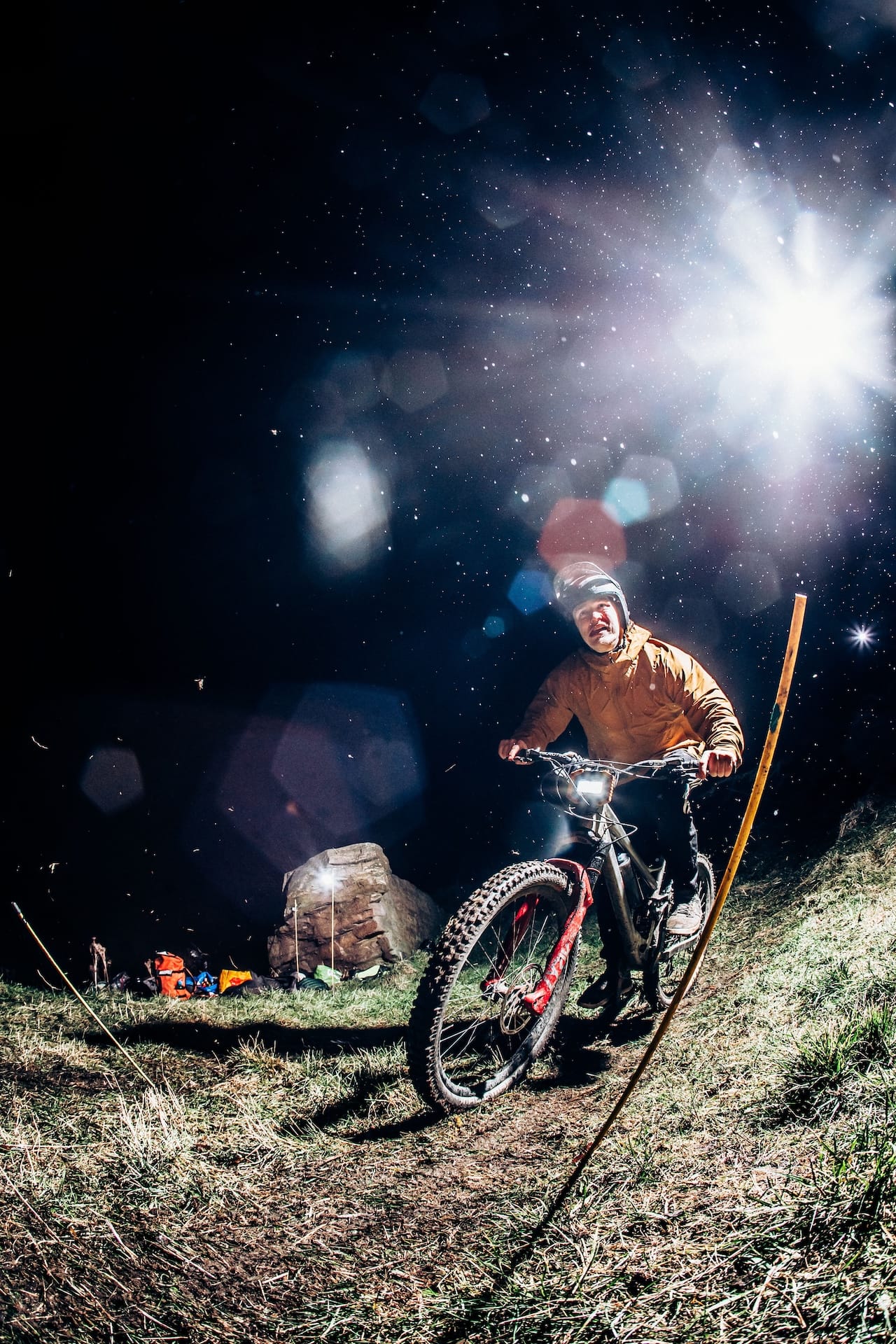 We run a knockout format, moving from heats, through quarters and semis towards the big and little finals depending on how many riders turn up. Those who make the finals are running back up the hill repeatedly, getting knackered, but it’s a very good problem to have. Race entry has remained the same since the first race: two quid in the pot and a random prize for the bag, with a suggested minimum donation of tinned fish. The quids are used to buy race essentials like new lights and replacement poles as the poor things have a very hard life. After finals, we collect up all the poles and lights and gather around the prize bag. As everyone puts a prize in, everyone gets a prize out of the pile with the winner getting first pick. Everyone also gets their name read out and a cheer from their fellow racers. The unintended consequence of this simple ceremony is the sense of community it has fostered. Everyone finds out each other’s names without having to ask and we all celebrate each other’s successes or lack thereof. Catalysed by the amount of time spent spectating after you’ve been knocked out, friendships, businesses and careers have been forged from between our poles. The winner gets 32 Gnar points, second 31, and on down the standings which contribute to the season’s overall position.