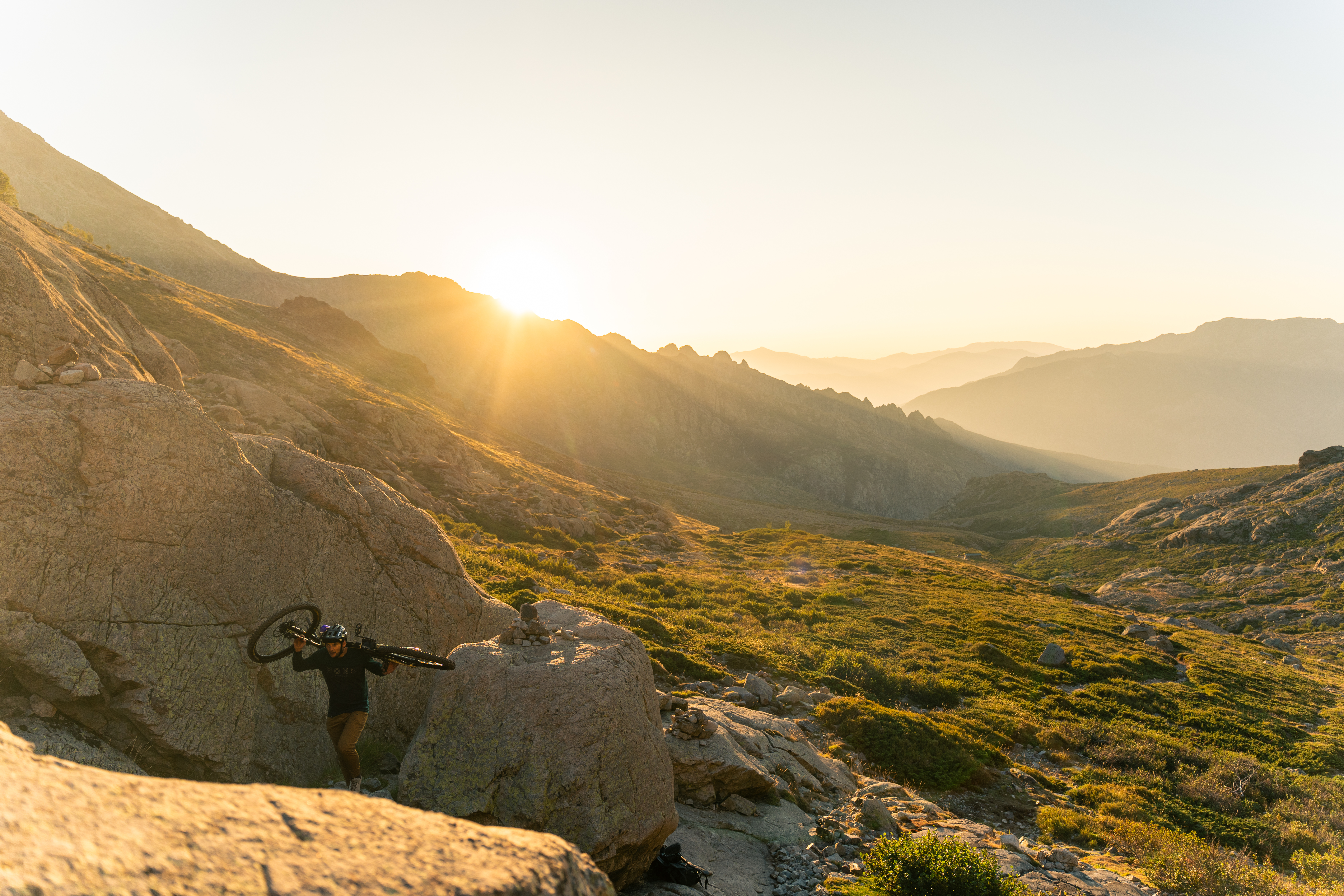 Matthew seems to have a lower bar to bike carrying – he’s prepared to risk there being a fair amount of suffering. He describes his attempt at ‘riding’ the GR20 in Corsica. “I was never going there to have a good time. I think a lot of it was wanting to push myself and see what I was capable of. Because I willingly knew that a lot of it wouldn’t be bikeable. But it was how far could I get? And, what could I learn? What could that teach me? And, what would I walk away with? And, yeah, ultimately, I obviously failed and got halfway. But I think I’ve walked away with so much more skill, confidence in myself and just all the mental learns as well. So I think there’s a lot to learn out of that aspect because nine times out of ten a hikeabike is a slog. But that built some big mental foundations and toughness.”