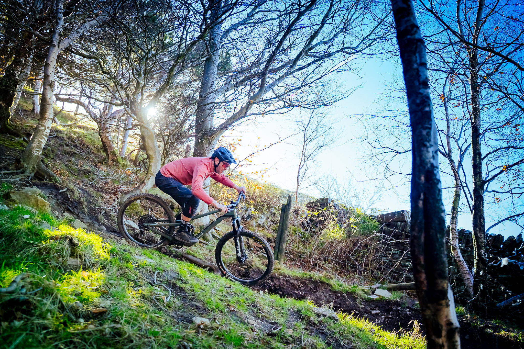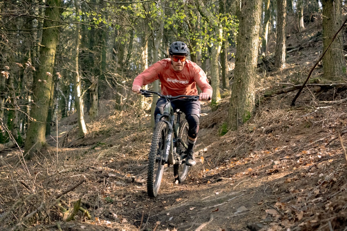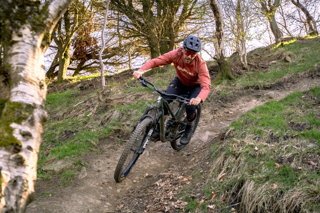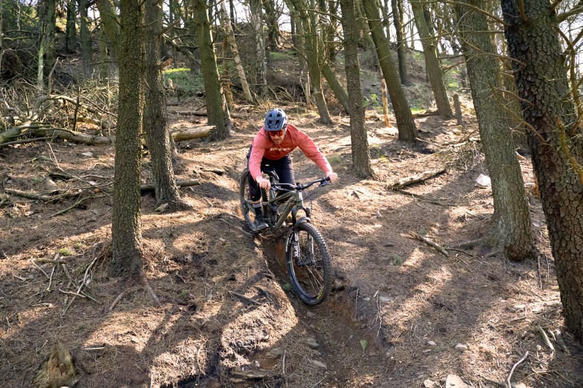 At slower speeds the rear end can feel a little stuttery on rough rocky tracks or webs of roots, and feel like it’s hanging up slightly. I’d like to try a coil shock at some point to see if this helps. But hey, this is a bike for going quick on and once you get a bit of momentum and get up to speed, the rear suspension wakes up and irons out rocks and roots keeping things feeling planted. The quicker you go the better it feels.
