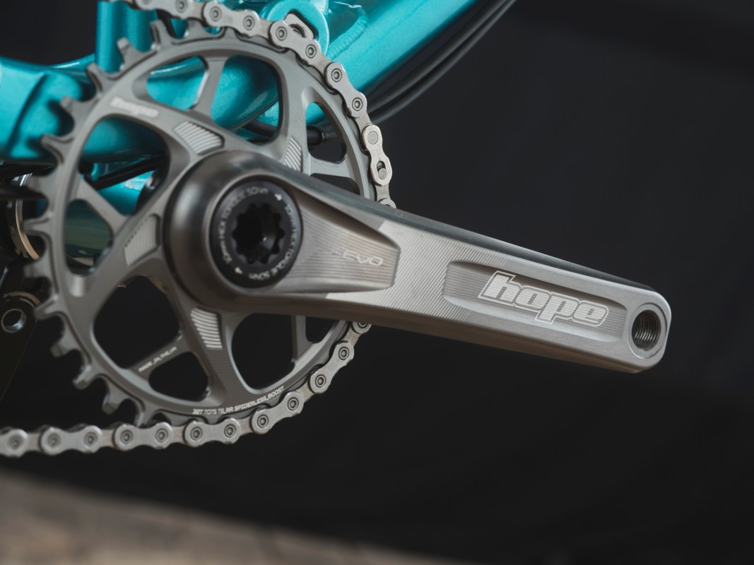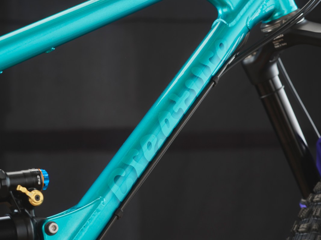 I live in Mid Wales, in the Dfyi Forest. I’ve lived there for two years. The riding there is very steep, very technical, lots of roots and lots of slate. I wanted a bike that was very capable on very steep and aggressive trail riding, and very technical riding. So I wanted a lot of grip, I wanted a really aggressive, slack head angle. So we’ve got a 63 degree head angle, with a 160mm fork. In terms of how I wanted the rest of the bike to feel, I wanted to basically get that wheel sticking on the ground as much as possible, dampen as much vibration as possible, have a comfortable ride that you can ride all day, but is really capable on really steep and technical tracks. It is designed to be kind of a winch and plummet type bike. Not really a technical climber.