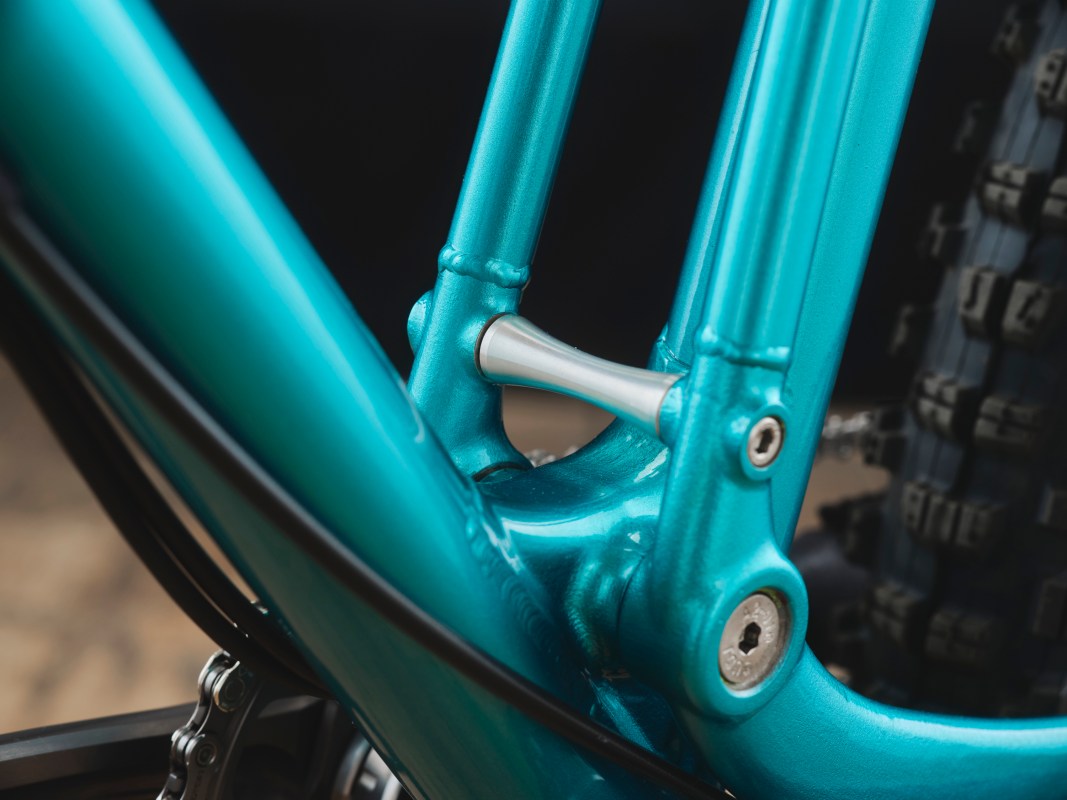 The Galago is a steel single pivot full suspension mountain bike. One of the unique things about it and where it gets its name from is the bearings of the main pivot don’t use sealed roller bearings, they use bushings. [Ed’s note: A Galago is a creature also known as a ‘bush baby’].