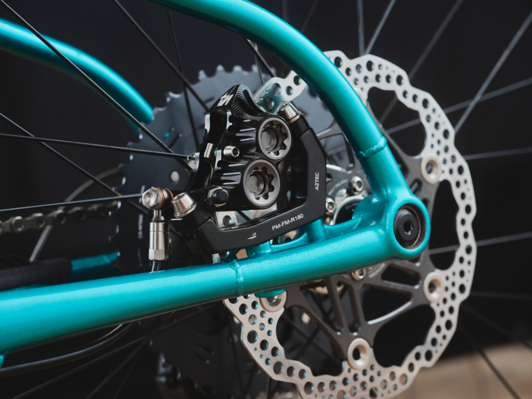 It’s a mixture, I guess, primarily a designer. So I’ve designed all the CAD. On this particular bike, the front triangle, or most of the front triangle, I should say, was fabricated by Gavin White of Coal Bikes. So I gave him these parts pre-machined. I basically gave him a bag of parts, the printed parts that were already post-machined, and the tubing not cut – and he cut it up and welded it for me. The rear swingarm is all made by me. I’m looking into manufacturing partners to try and do the manufacturing for me. I’m not a really good welder. I’m not a really good fabricator or machinist. I’m primarily a designer, so I’m trying to hand those processes off gradually.