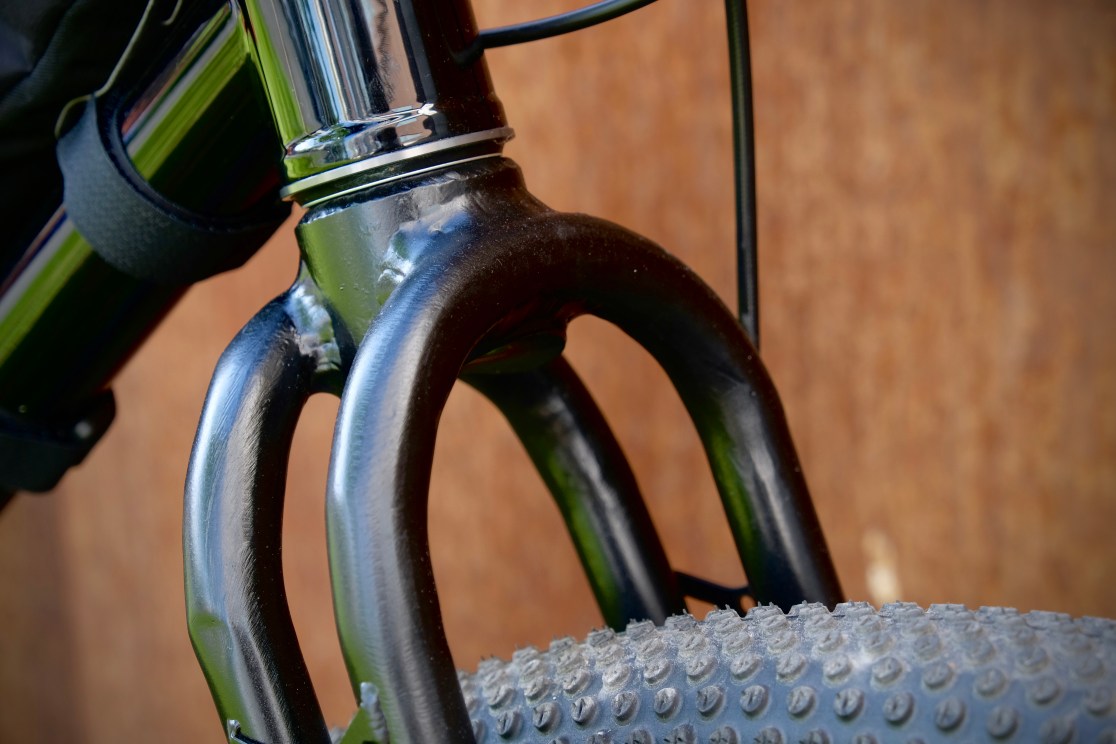 The fork is not necessarily part of the production series. It’s just I needed a fork for the show! I’m going to be running rigid so I kind of built the fork for that. Loads of people have said that they love the look of it and they’d like one. So I just need to refine the manufacturing process. I had a lot of trouble with making the bends at the top of the fork. It basically just didn’t work. The tooling that I had available to me at the time just wasn’t good enough. So I just need to make some better tooling and then hopefully I’ll have some better luck.