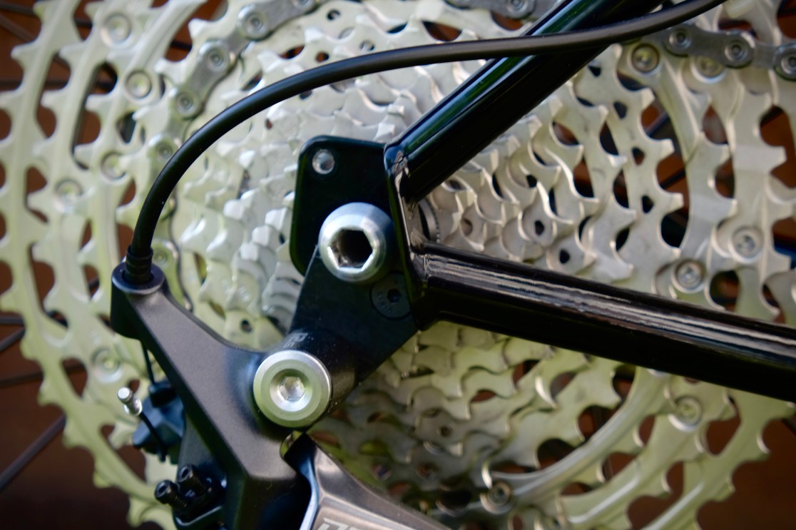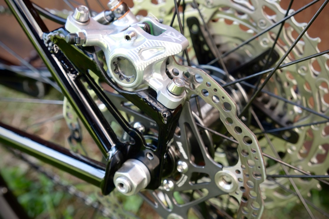 The dropouts again are laser cut sheet metal, even the non-drive side with the brake mount, it’s all folded sheet metal. And same with the drive side dropout.