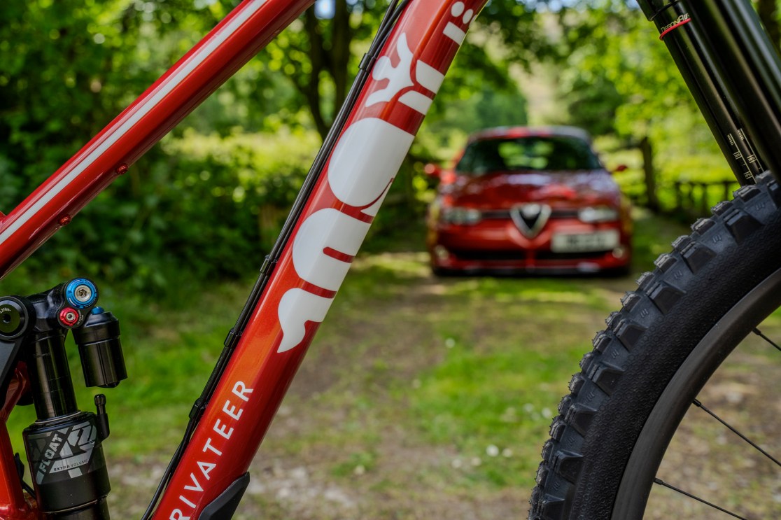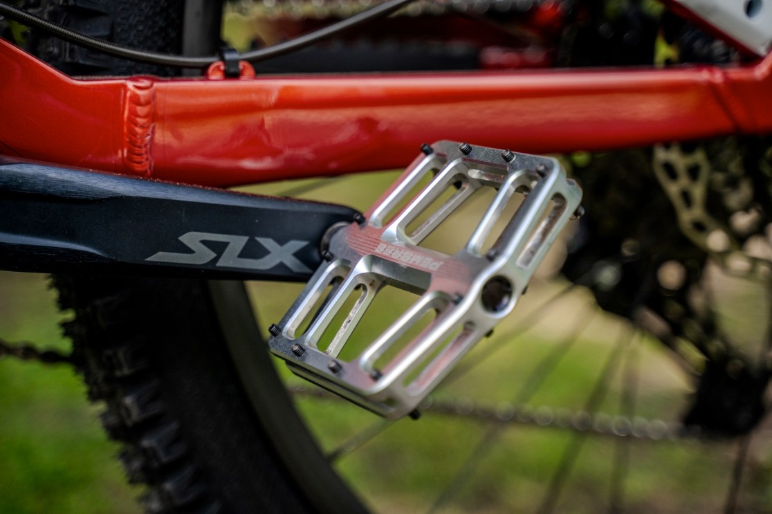 The finishing touches are the UK-made PEMBREE flat pedals and a brown SDG saddle which might seem like an odd choice but actually matches the black and tan leather interior of the car.