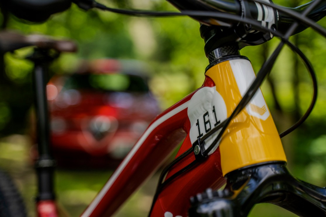 I had already built up a motorsport-inspired hardtail using inspiration from the old JPS livery, but now I had the opportunity to put together a truly unique bike. One that is linked to my passion for cars, and also echo back to the racing Alfa Romeo Giulia GTAm race car from the early 70’s (hence the yellow fork and head tube to match the yellow nose of those cars).