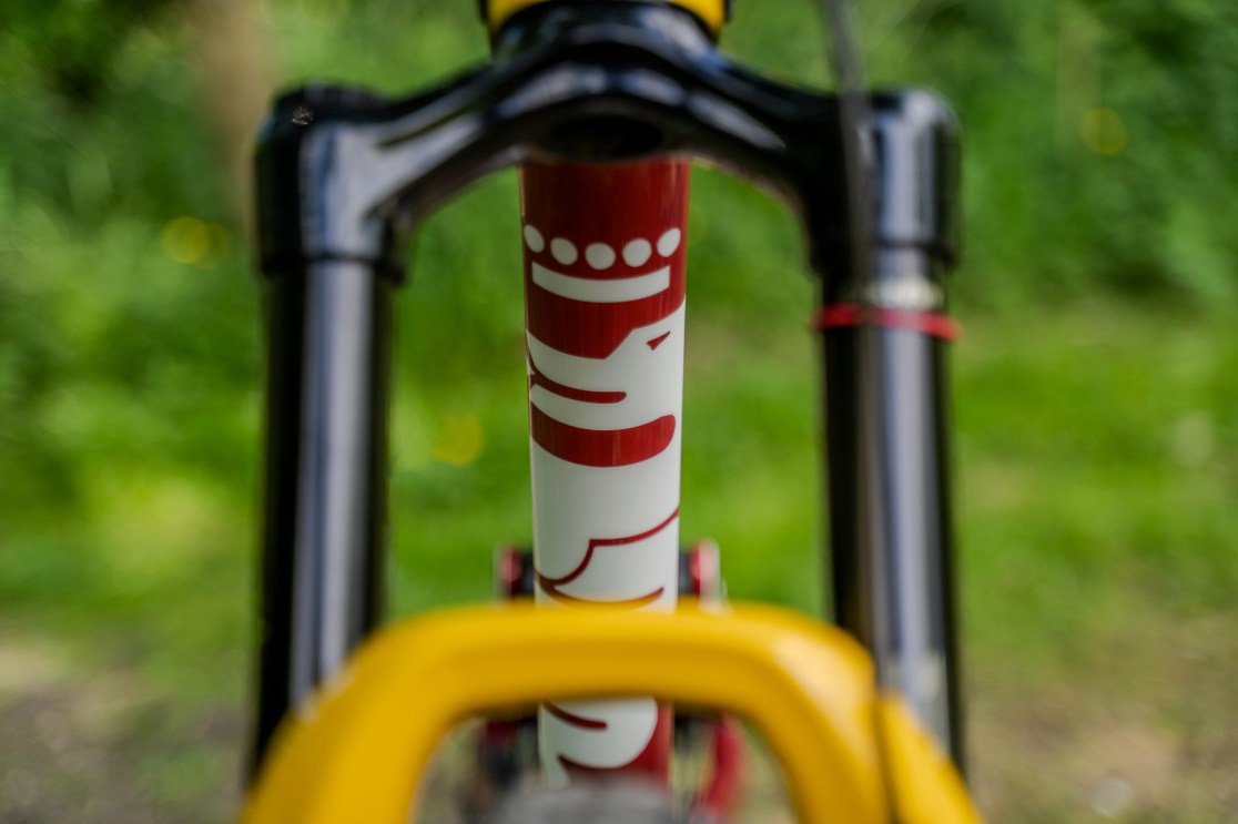 You might be wondering about the fork. In true Privateer fashion and in the spirit of ‘run what you bring’ the fork is actually a 2021 Lyrik Ultimate, painted in yellow with the latest generation graphics to give it that modern look. In my opinion, they look amazing, and they get a lot of positive comments.