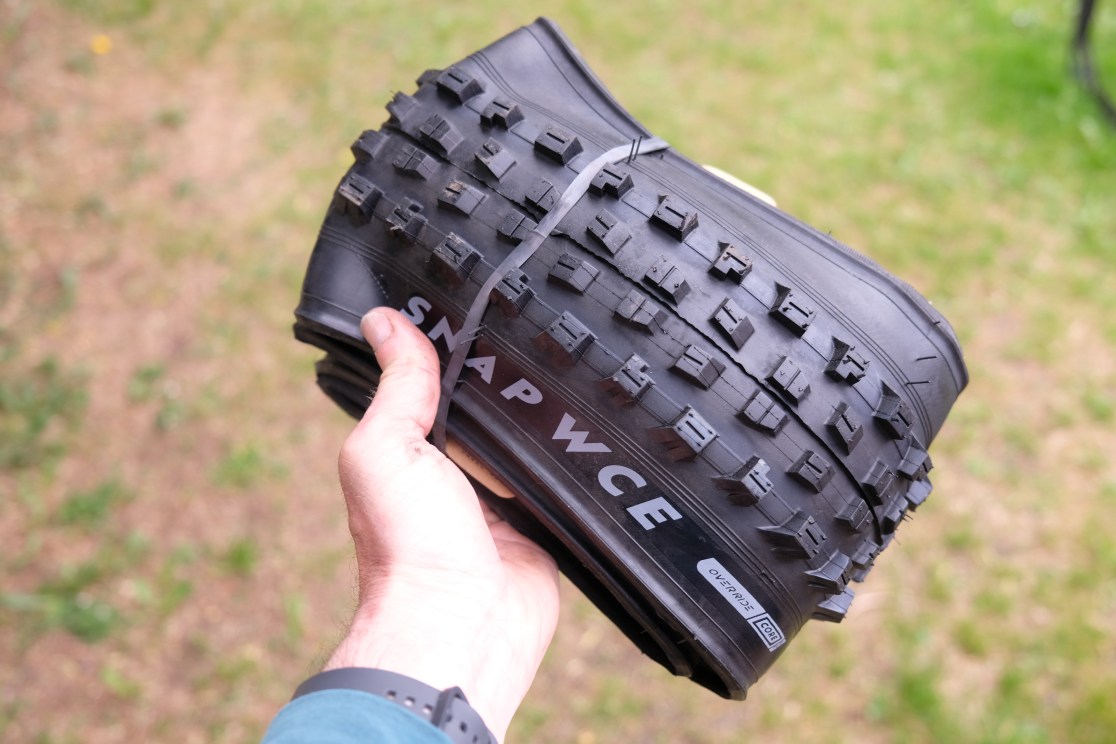 The collaboration between Vee Tire Co and Nutrak was one of the more eyebrow-raising things wer noticed from this year’s *Icebike trade show. Mountain bike tyres that cost under £60 shouldn’t be unusual. But they are. As the big brands go interstellar with pricing it appears to be left to Specialized and no Nutrak x Vee Tire Co. to bear the torch. This Snap WCE is sort of the mixed/loose/mud tyre generalist. The E Ctrl compound just means that it’s firm 60a in the middle knobs and supersoft 40a on the shoulders. Override Core is the casing which is very sturdy indeed.