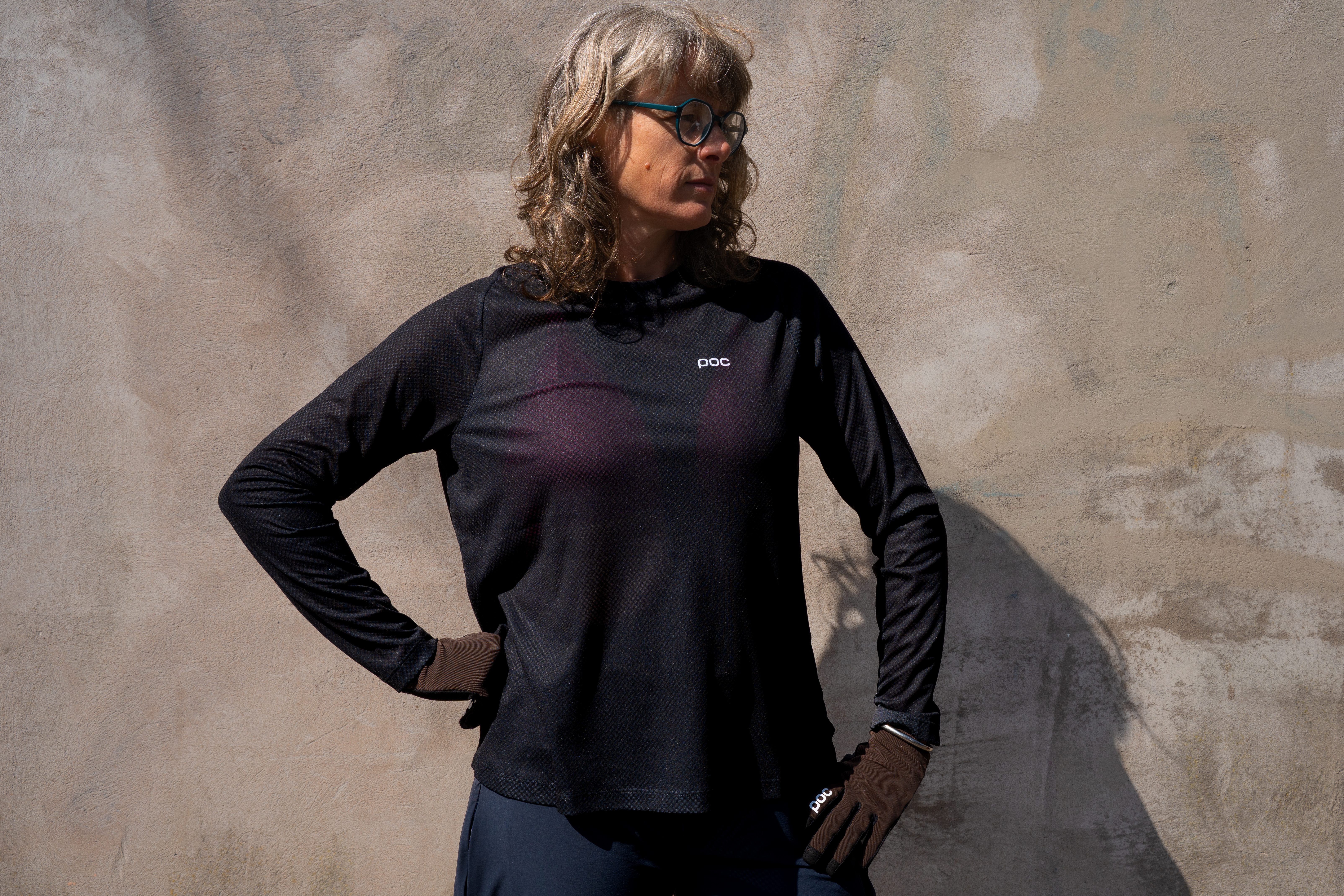 These have thin palms for maximum grip sensation, and fairly robust but breathable uppers. Having had a pair of quite similar but now discontinued POC Index Air gloves since 2016 (her oldest surviving pair), she has high hopes for these.
