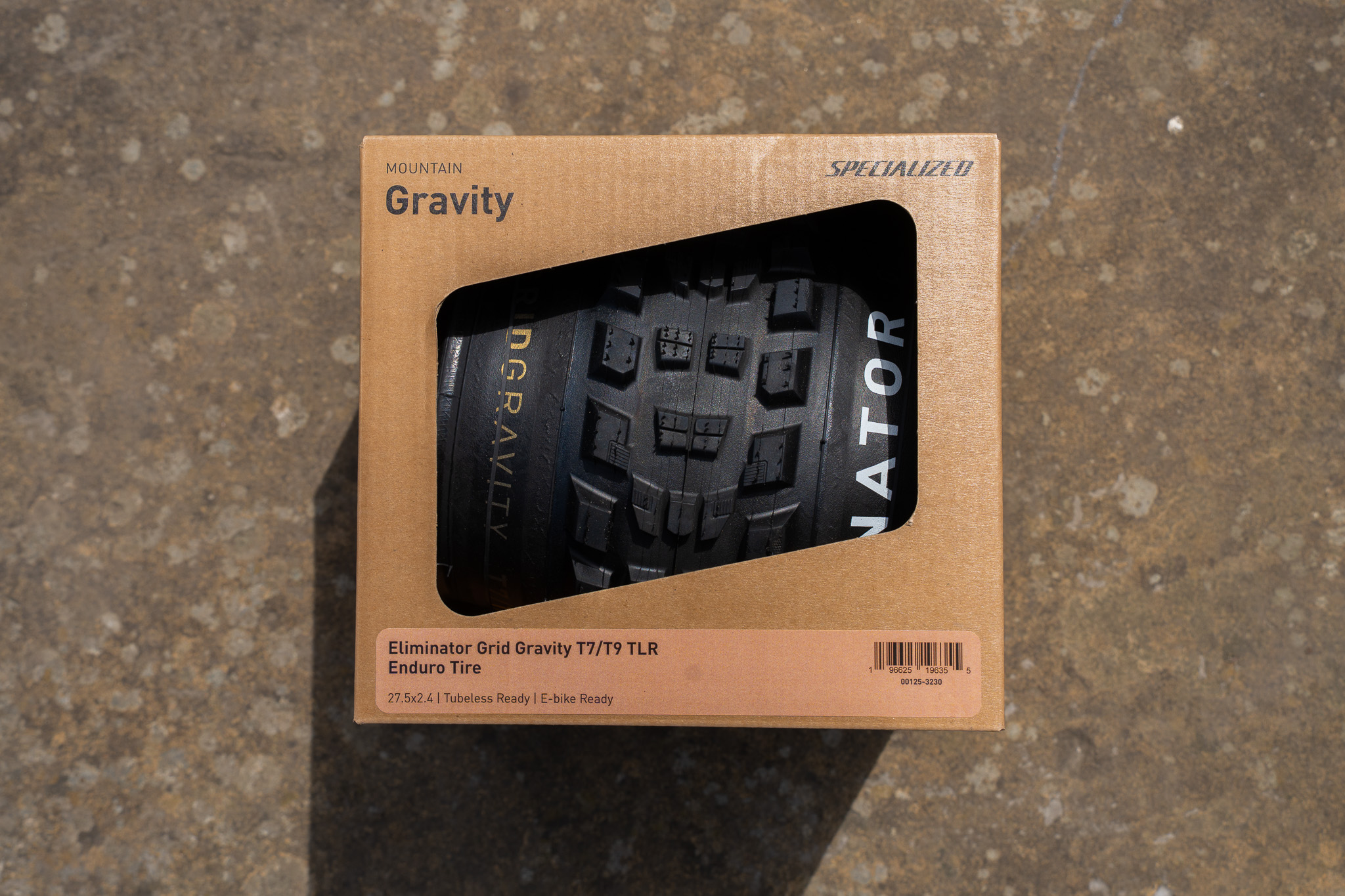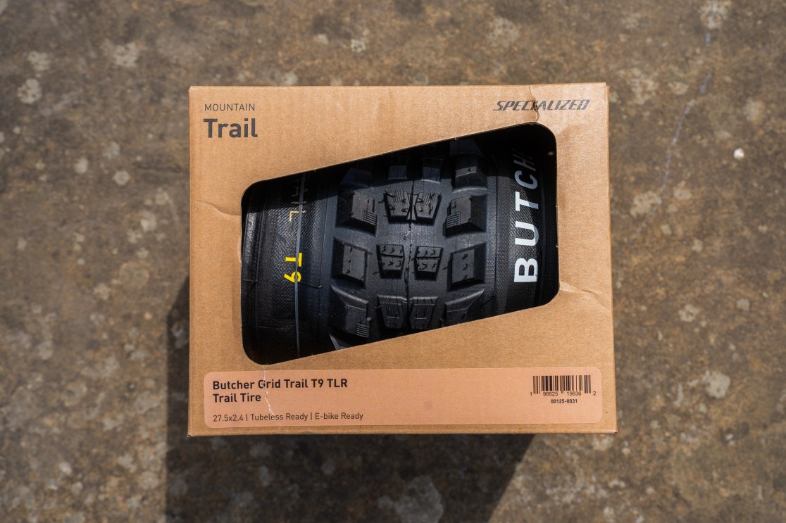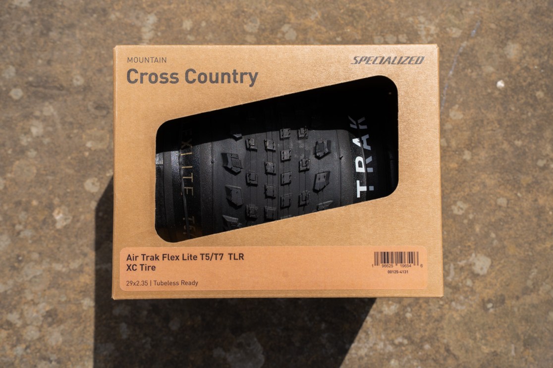The Butcher and the Eliminator are established names (they come as standard issue on pretty much all Specialized MTBs and eMTBs) but the Air Trak is new to us. Weighing about as much as a tyre insert (not really but still…) the 585g Air Trak 29×2.35in is apparently Specialized’s “Lightest and Fastest Hardpack XC Tire”. As well as a decent paperweilght the Air Trak is designed for “ultimate XC speed on hardpack, Air Trak delivers. Its fast-rolling tread cluster and high-speed center T5 compound ensure unmatched straight-line velocity, while grippier T7 compound on the sides delivers traction to maintain cornering speed.”