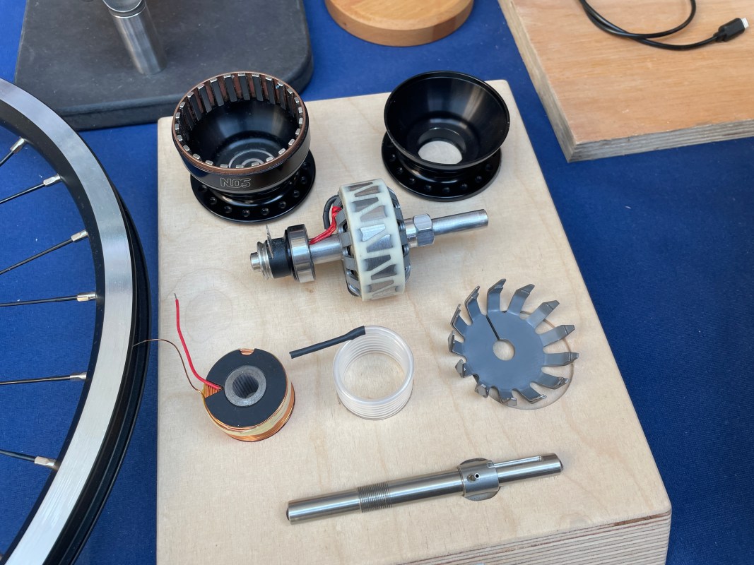 The 29S contains more magnets – 20 pole pairs – for lower speed charging and 29 inch wheels (there are German regulations about dynamo outputs that this has been designed to meet). The higher output also makes it suitable for charging other items on the go, alongside powering your light. That’s the next piece in the lustathon…