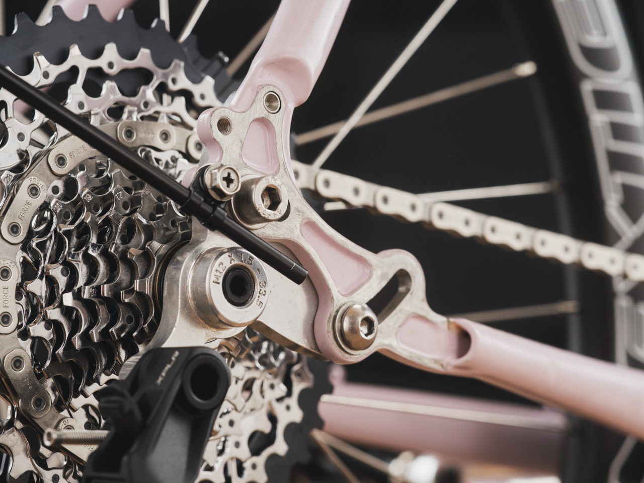 It’s not just a road bike, it is a fat road/gravel bike, – a froad bike! So, a drop bar bike designed around fat bike standards. Fat bike hubs, 100mm bottom bracket, 120/30mm axle on there at the minute, White Industries cranks. The customer has a collection of fat bikes, runs AXS on all of his bikes, and wants to be able to chop and change between his bikes. Now he can switch components between all five or six of his bikes.