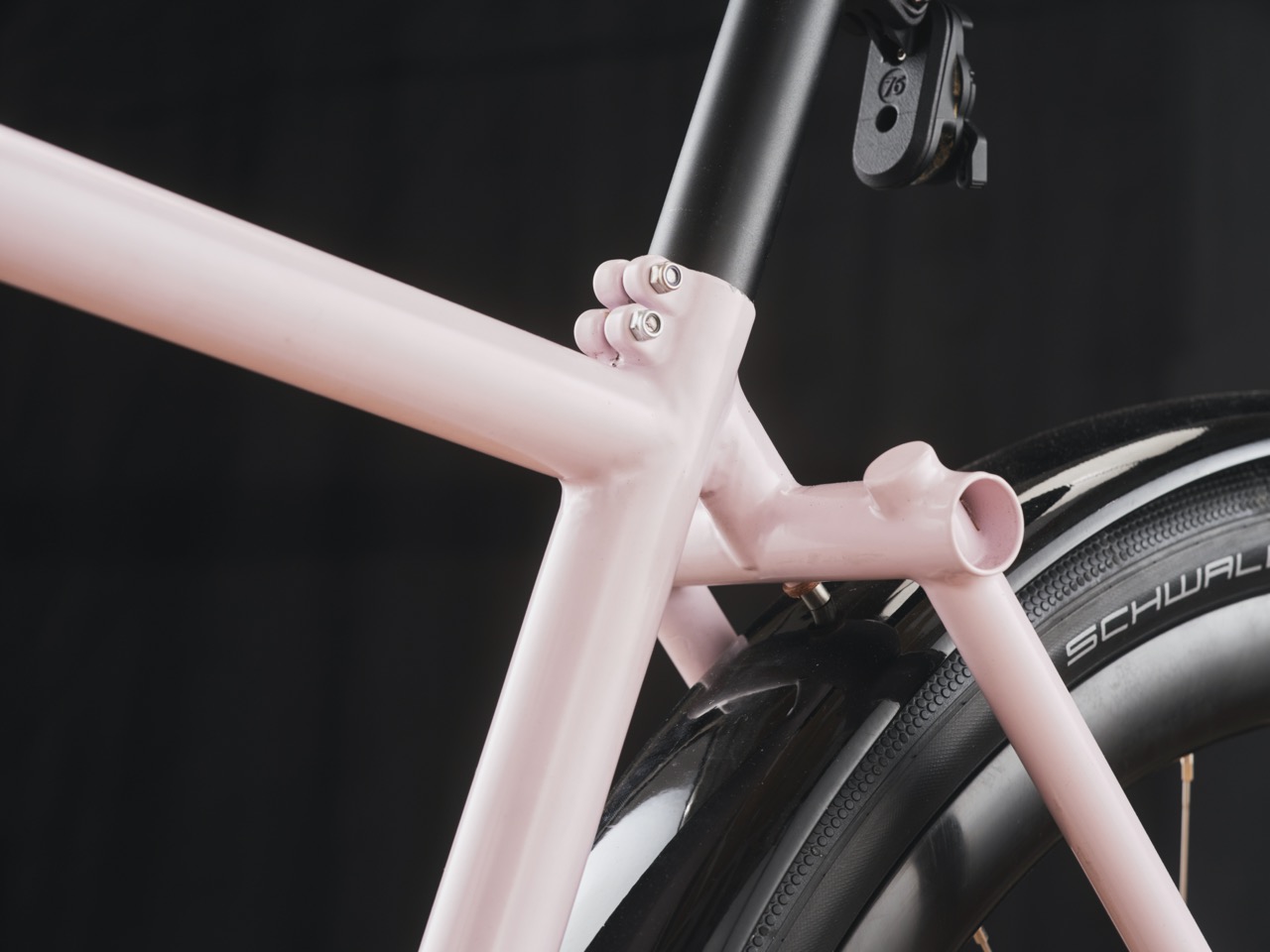 It is a bizarre bike, the closer you look the weirder it gets I think, which is one of the things I really love about it. From the side in profile looks like a kind of bog standard gravel, sort of slack gravel bike. And then you get a bit closer and realise you can fit a 4 inch 650b tyre in there if you take the mudguards off. It’s awesome!