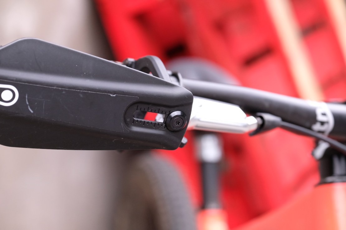 Secondly, they’re quick and easy to adjust to mate with whatever brake/dropper/shifter clusterf**k you may be running. 33mm of lateral adjustment. There’s also two mounting options for the arms should you need to perfect the angle of dangle or height etc. I would strongly recommend the quick-release version I tested here (not the version that fixes to lock-on grips’ inner clamp). The material used for the arms is bendy enough that you can install/remove the handguards without even having to remove your grips.