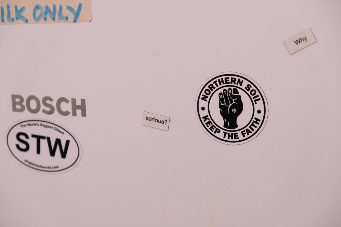 Spot the difference. Well, apart from the fact that this is a magnet and not a badge. This alternative Northern Soil logo design design features a subtle ‘MTB’ and the Singletrackworld ligature logo. Thoroughly tested, as you can see in the last photo above.