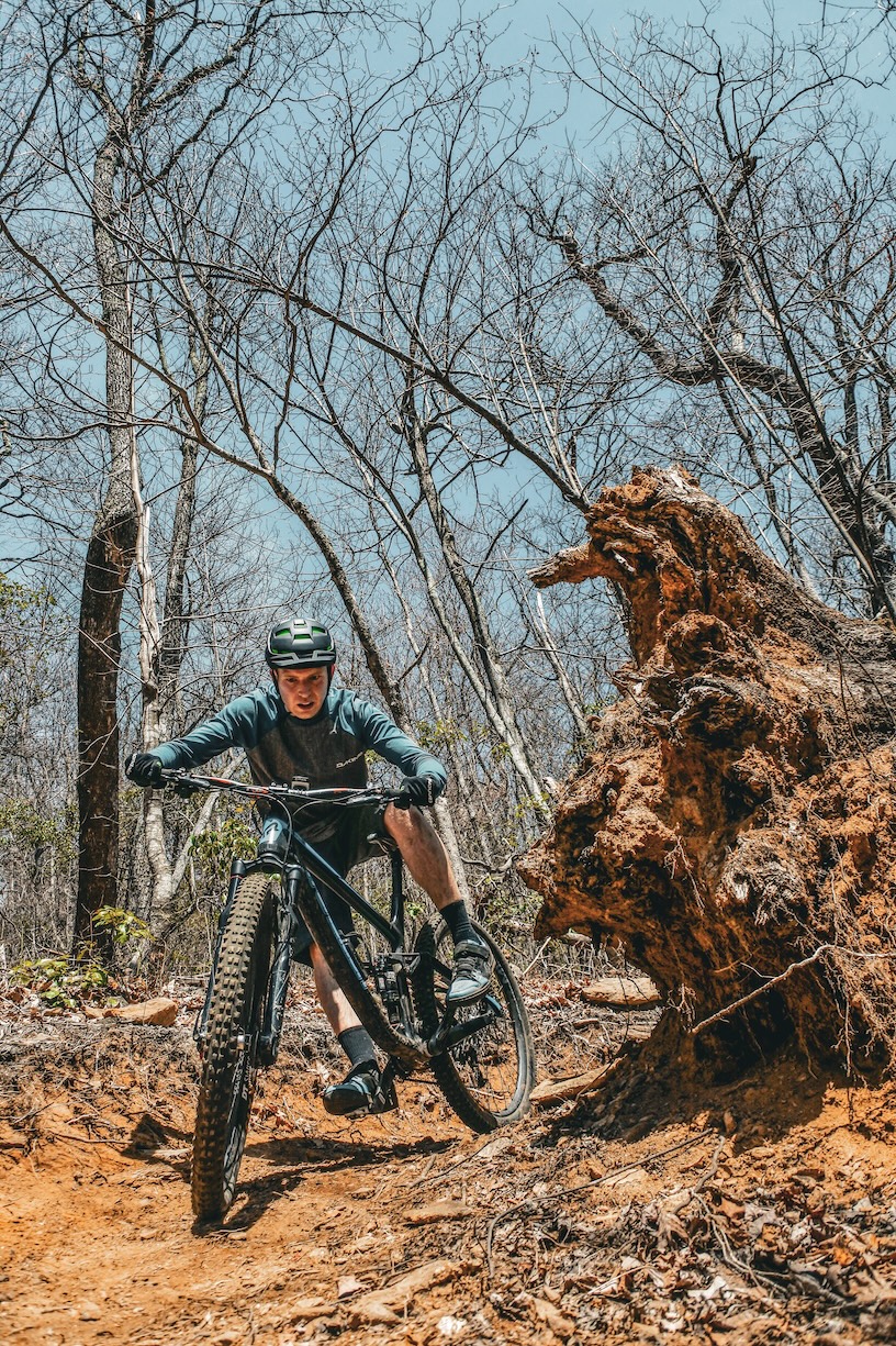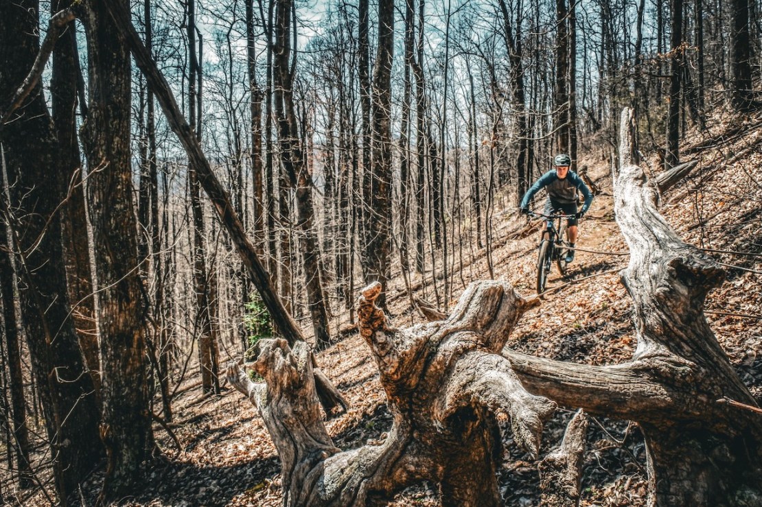 Now a realtor, with his BMX background, Jon formed a bike messenger business in the ’90s and has deep roots in the local scene. Cross-country racing isn’t for him – the last one he did, cooking on a stage race in Costa Rica, he says he almost melted. He and Sarah both tell me that many of the trails predate mountain biking and were cut by the Indigenous Cherokee, foresters, horses and hunters. As a result, it’s the abundant technical, rugged stuff that they love most.