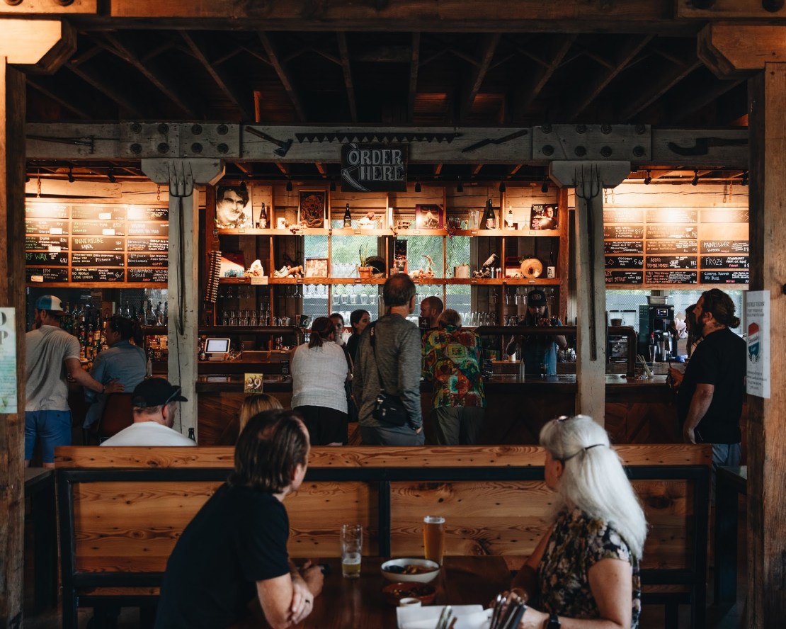 I need something at the bike shop, and at The Hub in nearby Brevard, I meet Nate, another welcoming local, to plot some routes. He’s another fan of rough and tumble trails and shows me Bennett Gap, one of the rowdiest routes in the area and where I first find myself in a hunter’s sight. At the bottom, we roll back to The Hub, a vibrant spot which has everything the American mountain biker needs – bike parts, guidance for trails, food and beer. Beer probably being the most important. It’s a bike shop with its own taproom. Or maybe a taproom with its own bike shop.