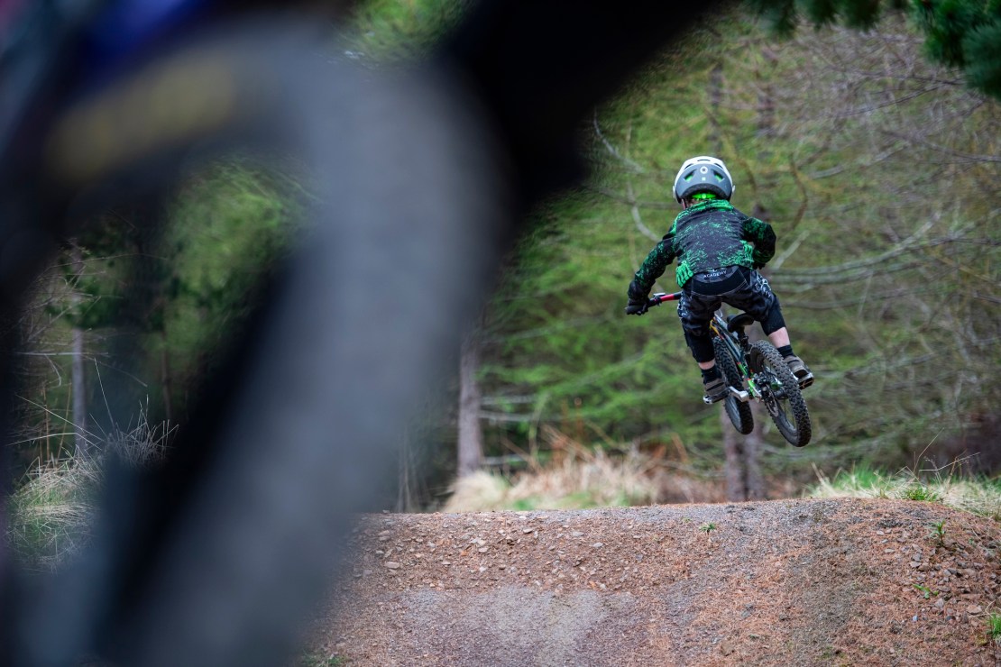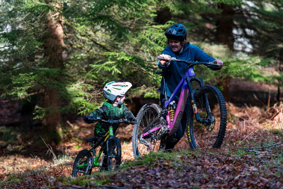 With kids’ bikes being worlds apart from the heavy behemoths that I and many others my age grew up on, it wouldn’t be too hard to replicate the dirt shaped into a jump anywhere and get the same buzz from today’s next generation. It’s where most kids’ riding life starts. Joe recalls having jumps made of concrete as a bairn growing up just north of Fort William. Not something we’d suggest copying but it all has to start somewhere. Riding a bike with a small person might be slow but it’s far faster than a small person walking…