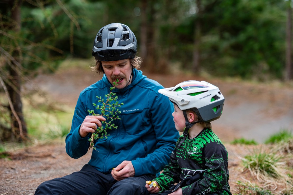 Midway through jump laps, we stop for a well-earned Gold bar, with Joe opting to add some fresh larch needles to increase the flavour. Bo doesn’t seem entirely convinced but tries some anyway, going so far as to try to eat a few pine needles from other trees to test them out, but Joe soon disabuses him of that notion.