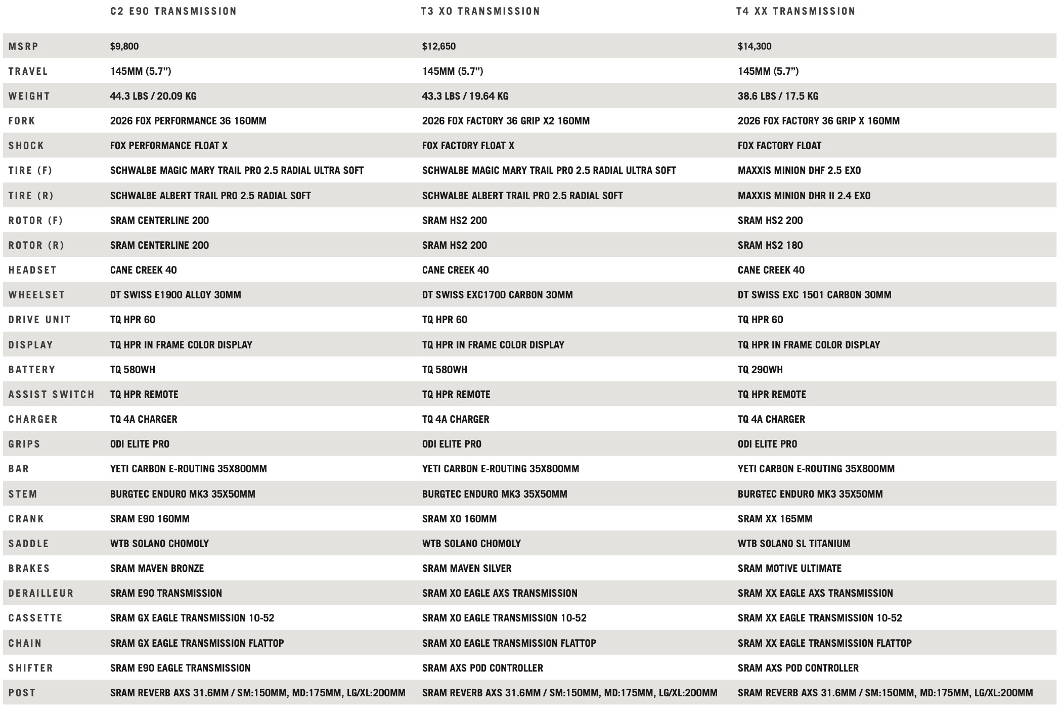 Well, seeing as you didn’t ask, the Yeti MTe range comprises three models: MTe C2 $9,800, MTe T3 $12,650, MTe T4 $14,400. Told you not to ask.