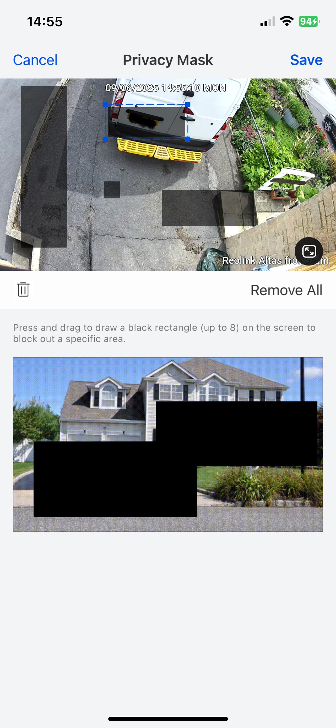 If you want to add a privacy mask so you’re not recording your neighbours, it’s a simple case of drawing a box on the image once you’ve got the camera positioned. There are various AI settings you can use if you want to stop your cat from triggering the camera, and the recordings are tagged with ‘person’, ‘vehicle’, ‘animal’ and ‘other’ to help you try and locate particular incidents. There’s another setting you can switch if you’ve got a lot of waving branches that trigger false alarms too. It’s all very customisable.