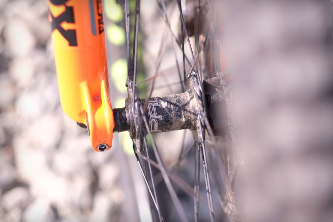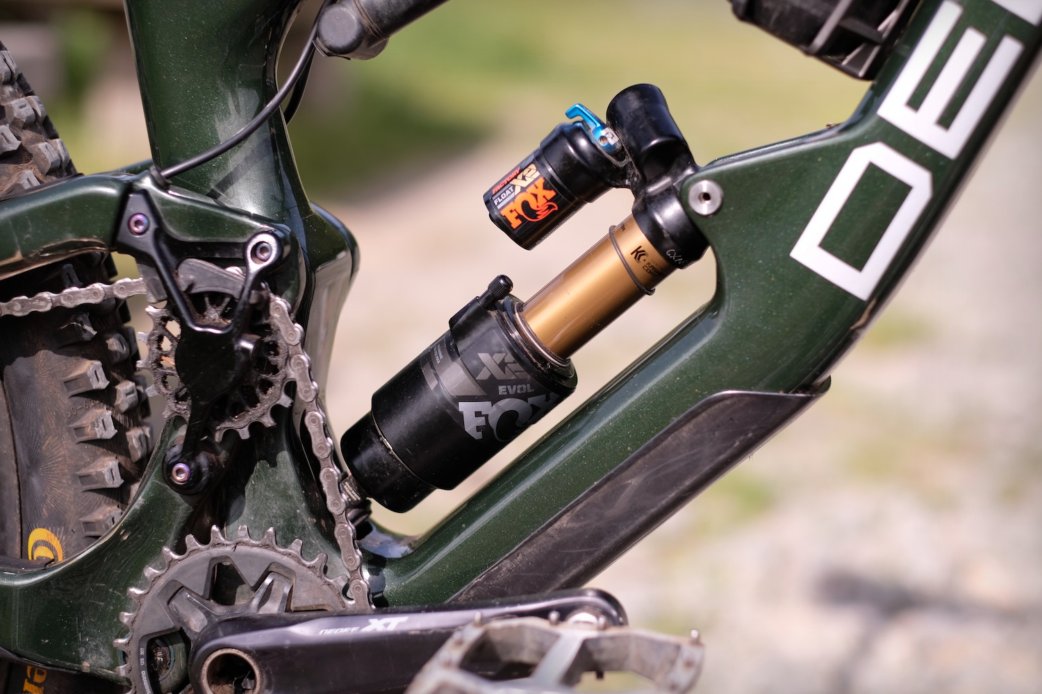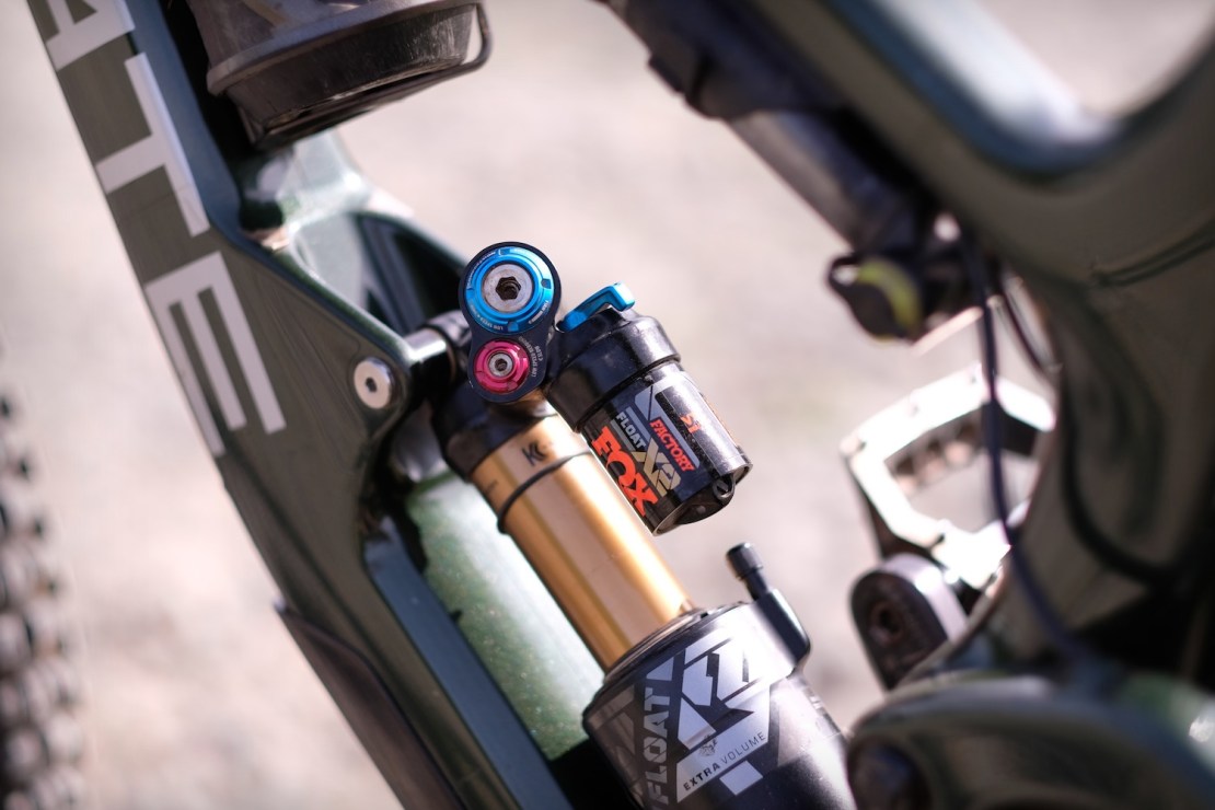 TS: “Fox Factory 38, about 75psi, fairly open compression and a medium setting rebound.”