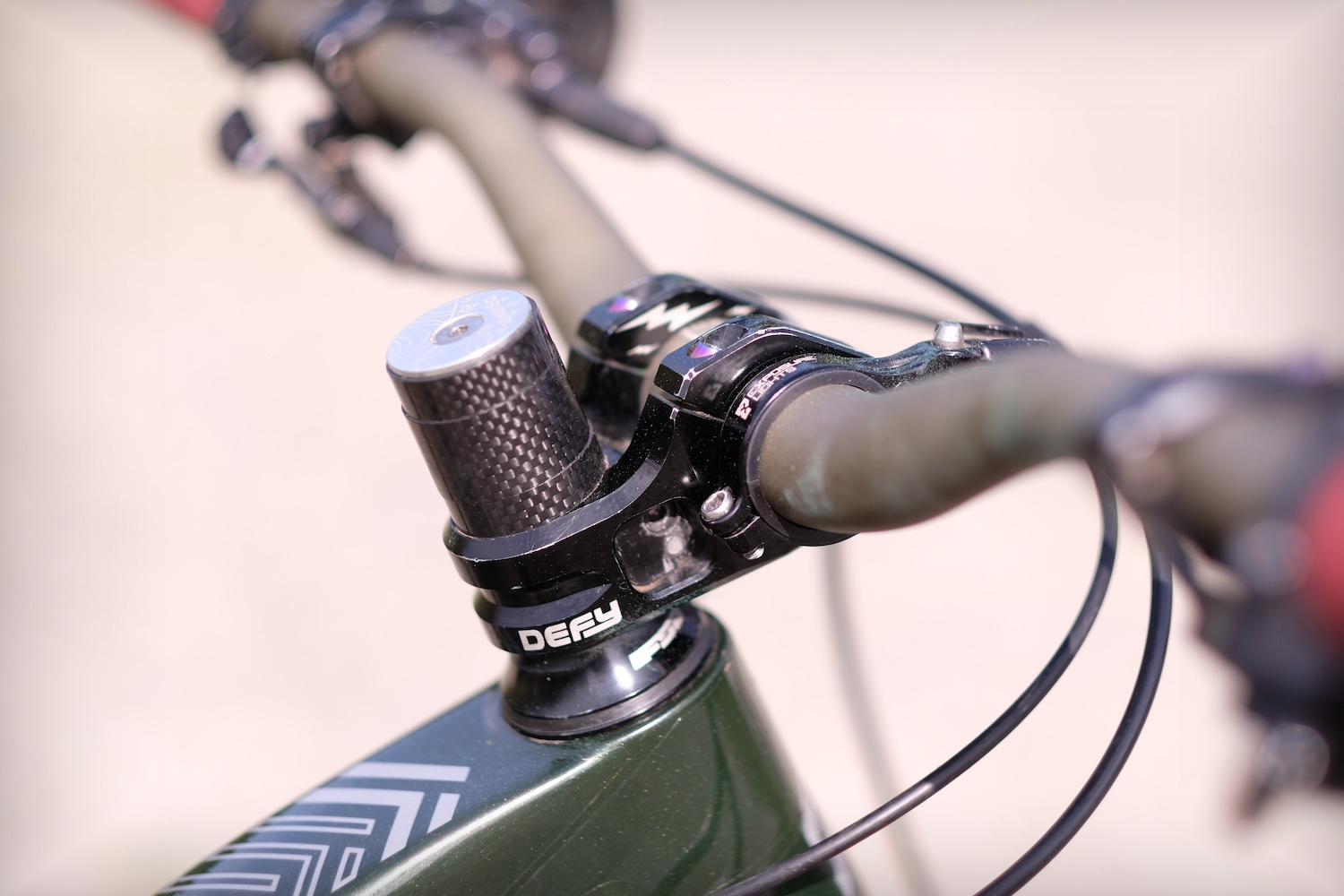 TS: “Favourite component is probably my stem, DMR defy, 50mm reach 31.8 size. It’s been swapped over from so many bikes, it’s probably about 15 years old at this point. I like how it looks kind of like a DH stem on the clamp area. Also really like my ODI Longnecks push ons, they’re a must. Best grip ever.”