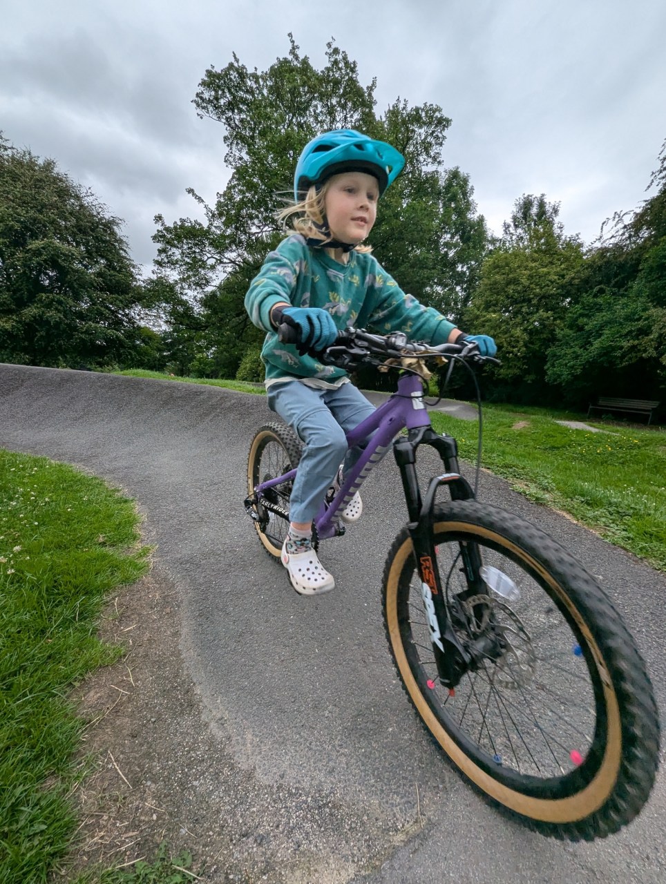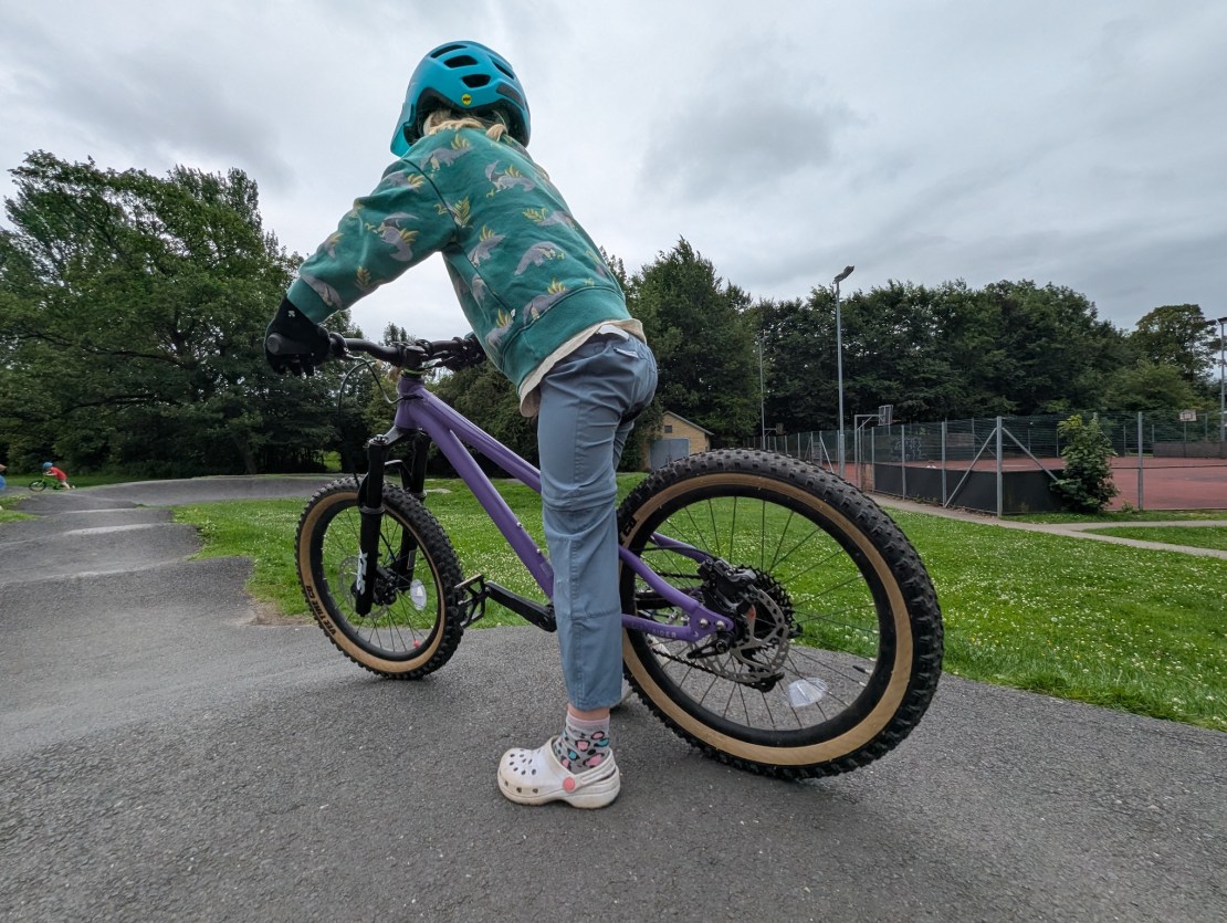 I wasn’t sure how our daughter would take to the Hellion, as we’d just got her a second-hand 20in wheeled bike with rigid forks, and the Hellion is noticeably heavier, with wider tyres. However she immediately clicked with the bike despite the extra weight and rolling resistance.