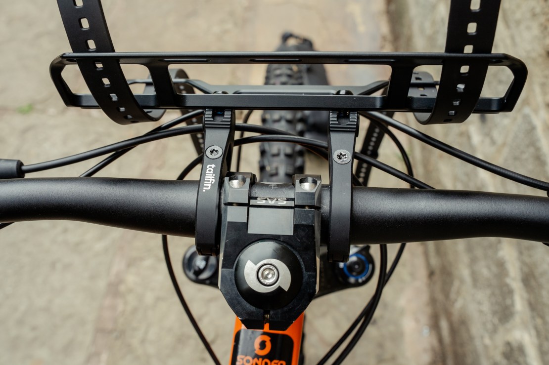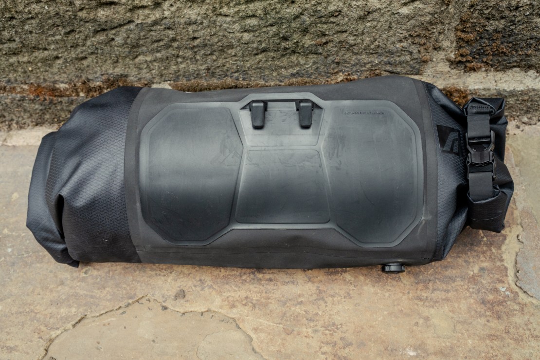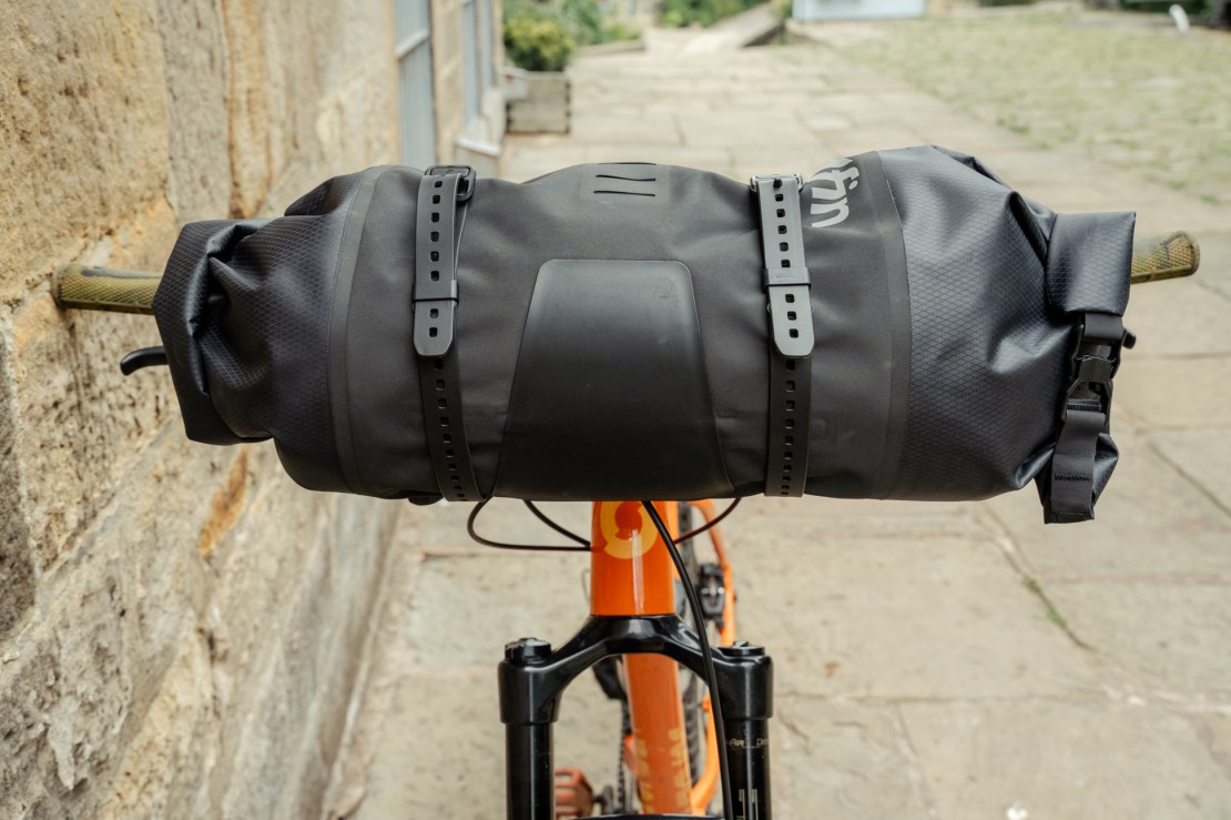 Strap in folks! Literally. Yet more bikepacking system stuff. “We designed the Bar Cage for people who love their bikes, not just for racing, but for living.” – Mr Taillfin. CNCd aluminium. 247g. Claims to be “rock-solid and fits almost any bike or bar”. Strap on a dry bag, yoga mat, or – coincidentally enough – Tailfin’s new range of dedicated waterproof packs ( 8, 11 and 15L).