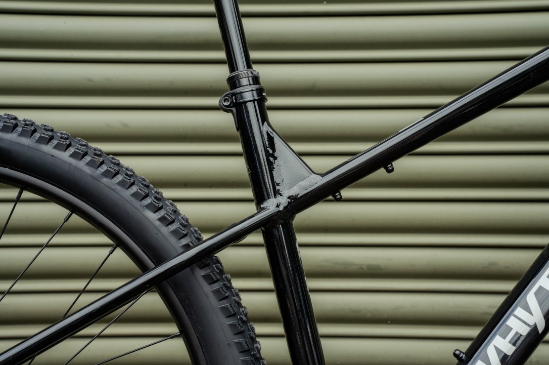Whyte have used thick liquorice cake icing for the top tube/seat tube junction.