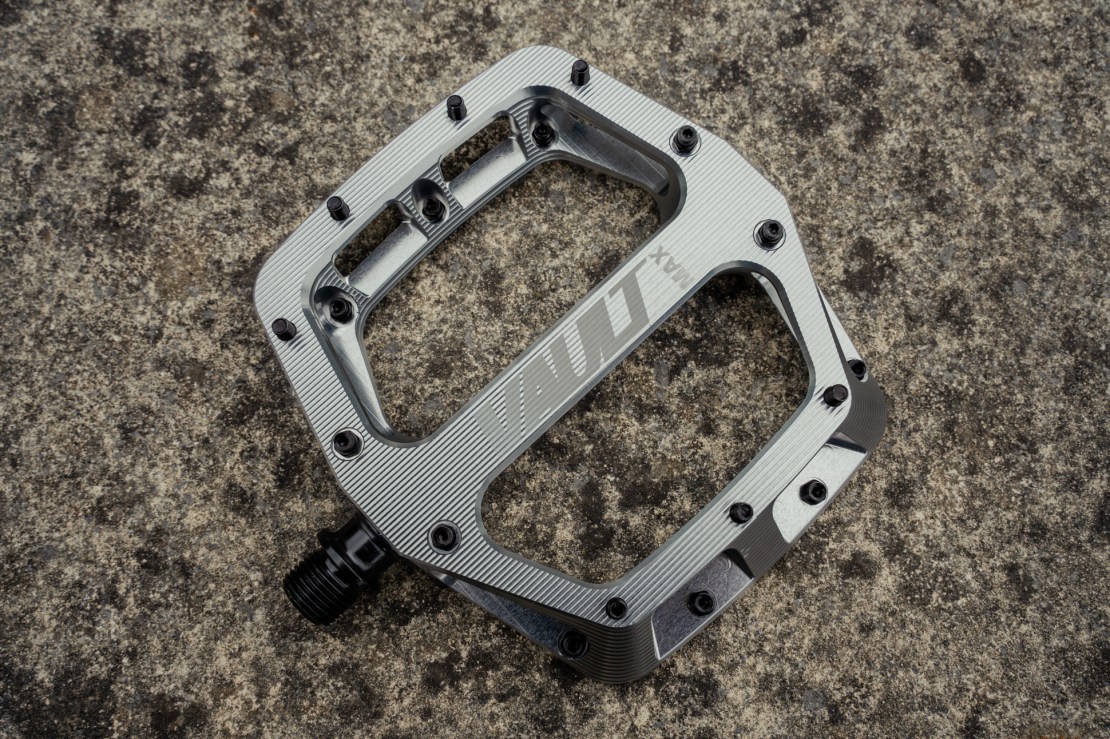 When is a DMR Vault not a DMR Vault? When it’s a DMR Vault Max, that’s when. What does the Max denote? It’s biggerer. 11% biggerer. 112mm x 111mm to be precise. 5mm concavity claimed. 17mm thickness. Perhaps most significantly, the Vault Max is DMR’s first ever UK made pedal. Full CNC 6061 aluminium, manufactured near to DMR HQ by PR Precision Engineering of Sussex. Which no doubt is reflected in the premium price tag.