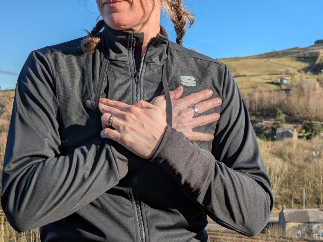 This means it’s not so good for sitting around in after a ride, and doesn’t keep you as cosy on a frosty morning. However, it’s more functional when it comes to pedalling – you can be giving it beans before you’ll be too cooked. This is helped by the stretchy panels under the arms, which allow a bit more air flow (but do reduce the windproof-ness).