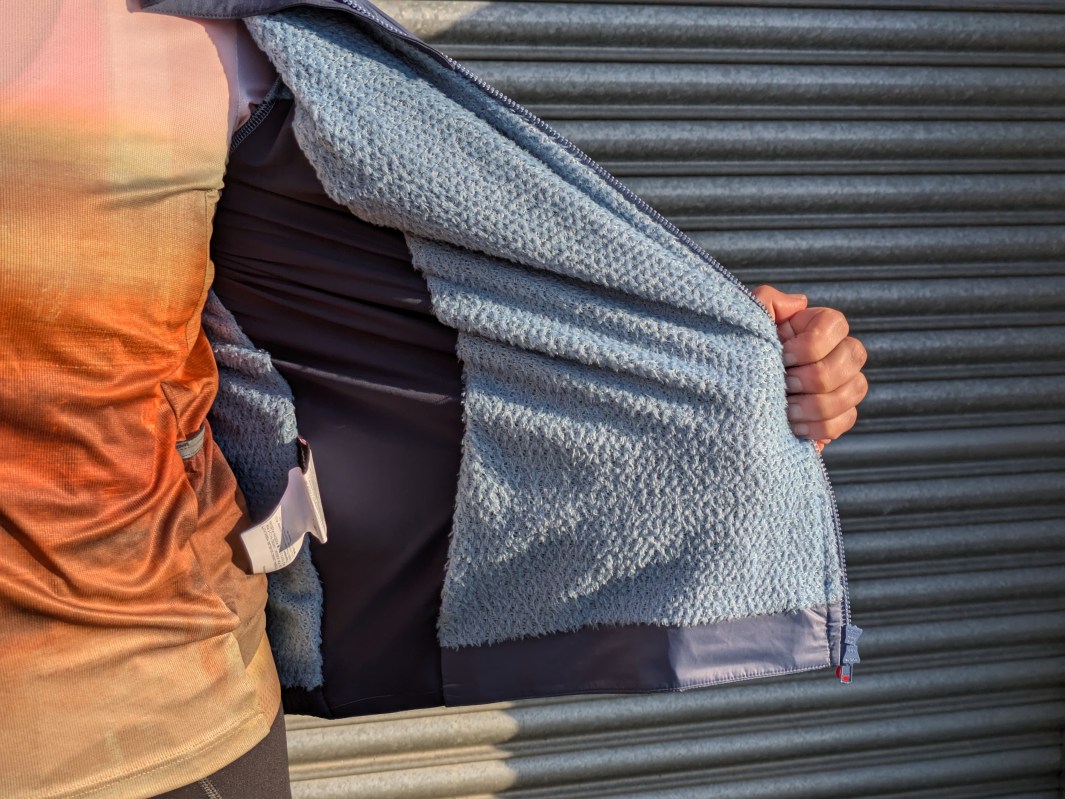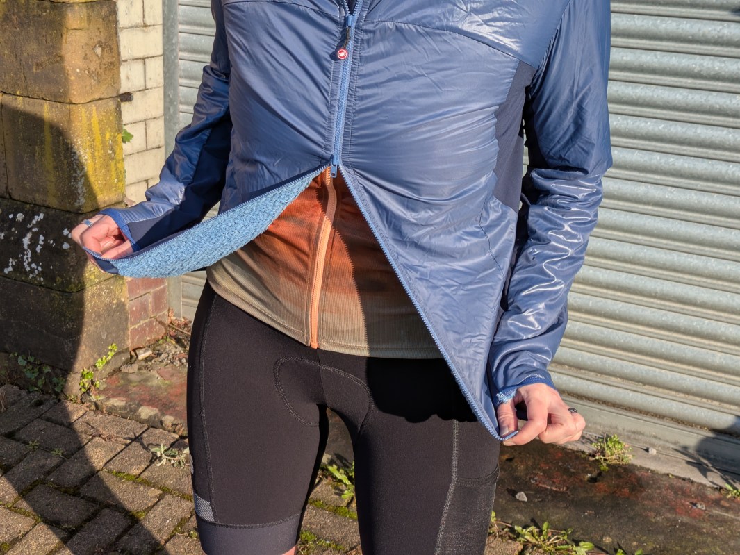 This jacket is very shiny. I would like it a lot more if it didn’t have the oddly wet-look fabric to it. However, it is lightweight and manages to be pretty cosy thanks to its fuzzy Polartec Alpha lining – the same as is in the Sportful Supergiara.