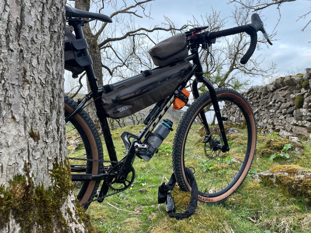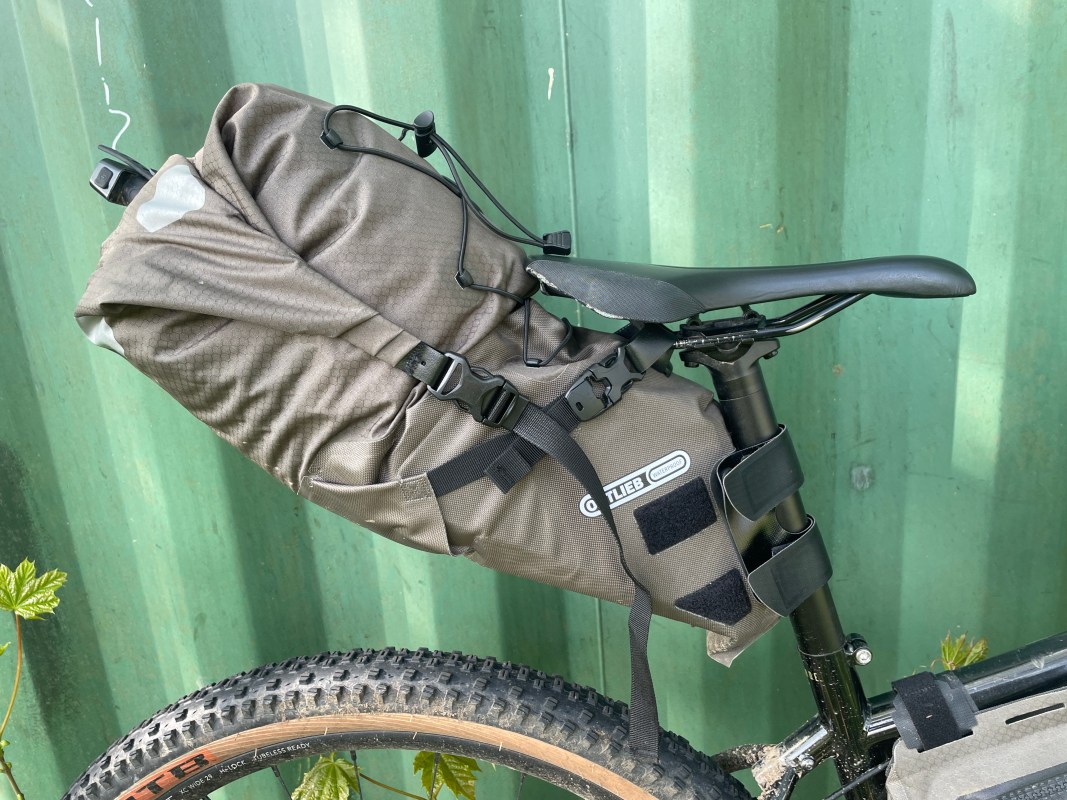This attaches to your saddle rails and seatpost – so not suitable for if you have a dropper. Roll it up, use the valve to let out trapped air, roll it some more, tighten the straps, and then finally pop that valve in – I found this created a really tightly packed pack that didn’t waggle around, even on the roughest sections. I used the top elastic to strap extra bits and pieces when I was on the go and didn’t want to unpack the bag. It’s a bit of a procedure to get the pack compressed and waggle-free, so give some thought to what you put in there and in what order as you don’t want to be packing and unpacking too often.