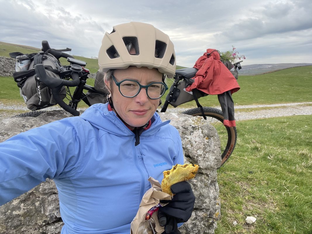 I wore these (ancient) windproof knee sleeves partly to keep me warm and partly to protect my legs from chafing against the bags. I find I tend to brush frame packs, especially with my right knee, and I didn’t want to wear full riding trousers. This was a good compromise, but by the second day they were starting to slip a little, and by the end of the day the gripper was really painful on my thighs. I’d consider it a proof of concept, but would like to try some newer versions to see if they’re more comfortable.