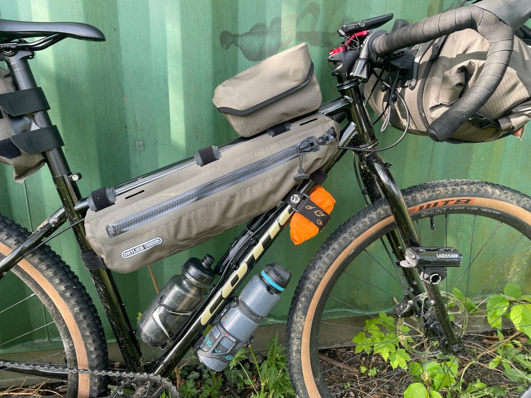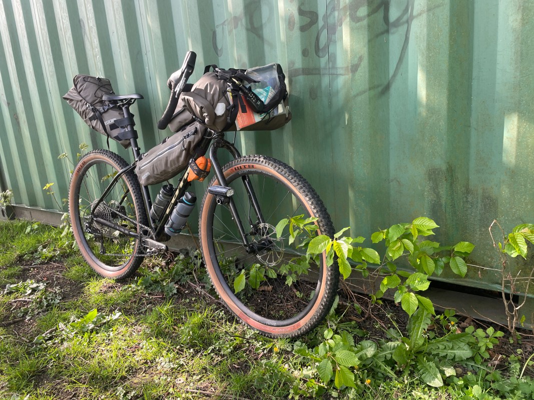 I also threaded a HipLok bike lock onto the front. It held in place, but it did jangle a bit annoyingly. I was supposed to have an Abus folding lock, but a mix up meant it wasn’t at the office for me to take with me. I’ll definitely take it next time, probably mounted to my fork. I did try adding the folding lock I have from Hiplok, but it was very heavy and I felt like I could feel it on the fork. Some people suggested I didn’t need to take a lock, but I wanted to be able to go into cafes and places to get food, or to go and explore. As it turned out, with the Hover cam, battery charger, sleeping kit etc I felt like there was too much valuable stuff on my bike that I couldn’t carry with me to go exploring, so I didn’t do much of that. I’d still take a lock next time for cafe and pub stops though, and I’d make sure it was easier to get to – the weaving the Hiplock in and out of the straps in order to stop it rattling was enough of a faff that it put me off stopping in some places.
