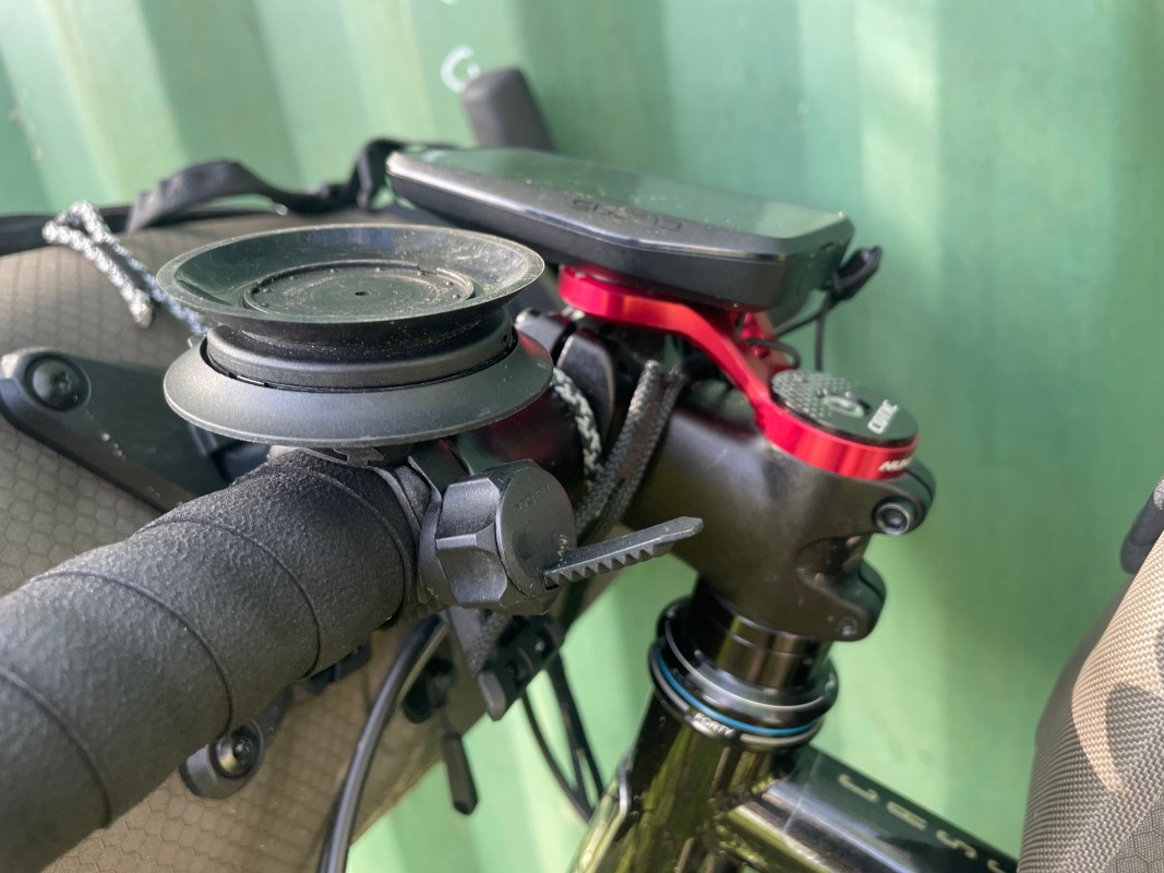 Borrowed from Amanda, this was needed because the Coros Dura mount was too big and bulky to fit with my set up.