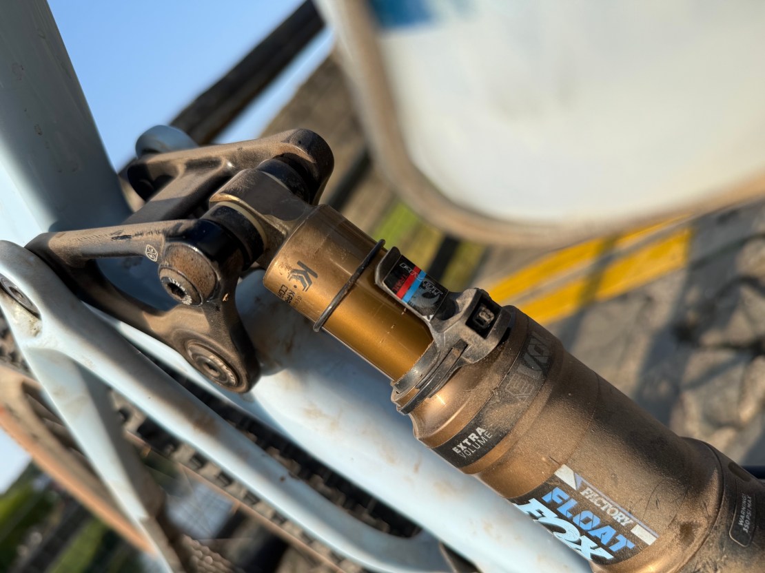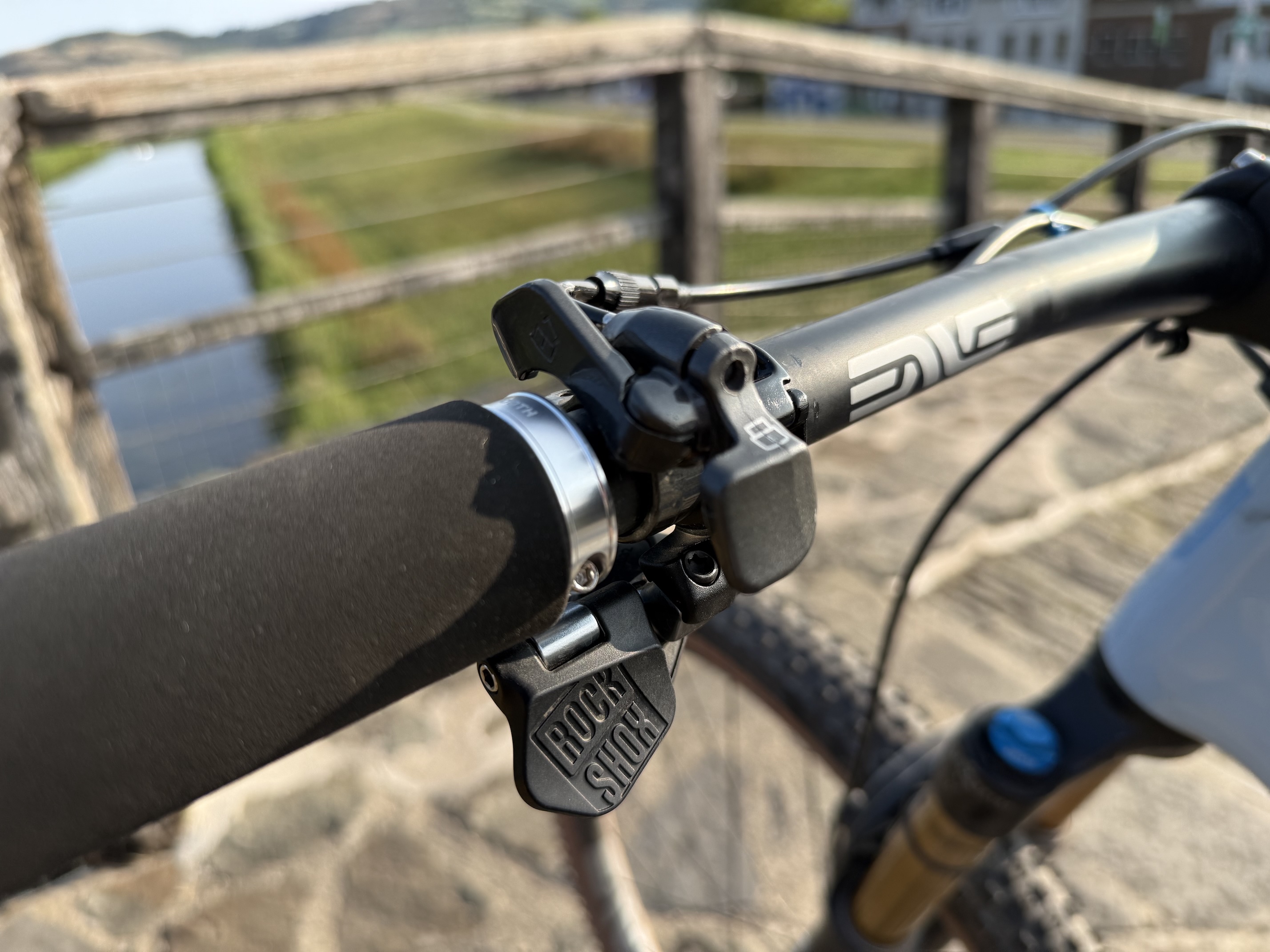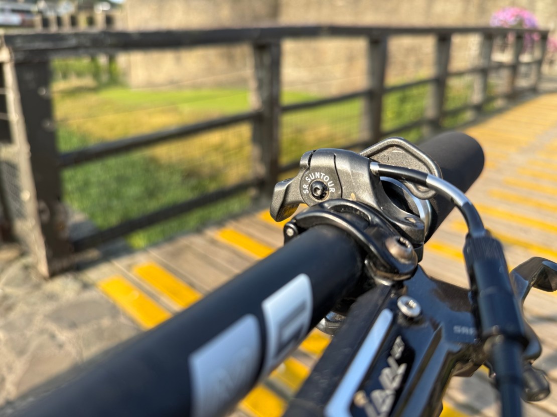 JB: “It’s taken me a long time to re-program from a ‘stiffer is better’ XC approach but now I generally run your classic 30% sag front and rear but with slightly less compression at the front. The rear has a remote lockout but it’s rarely used. Top hack here is I swapped out the stock RockShox gripshift lockout (Yep, I know it’s a Fox shock…) to a £20 SR Suntour offering. This lever is hands down my favourite in terms of performance, tactile feel and space saving.”