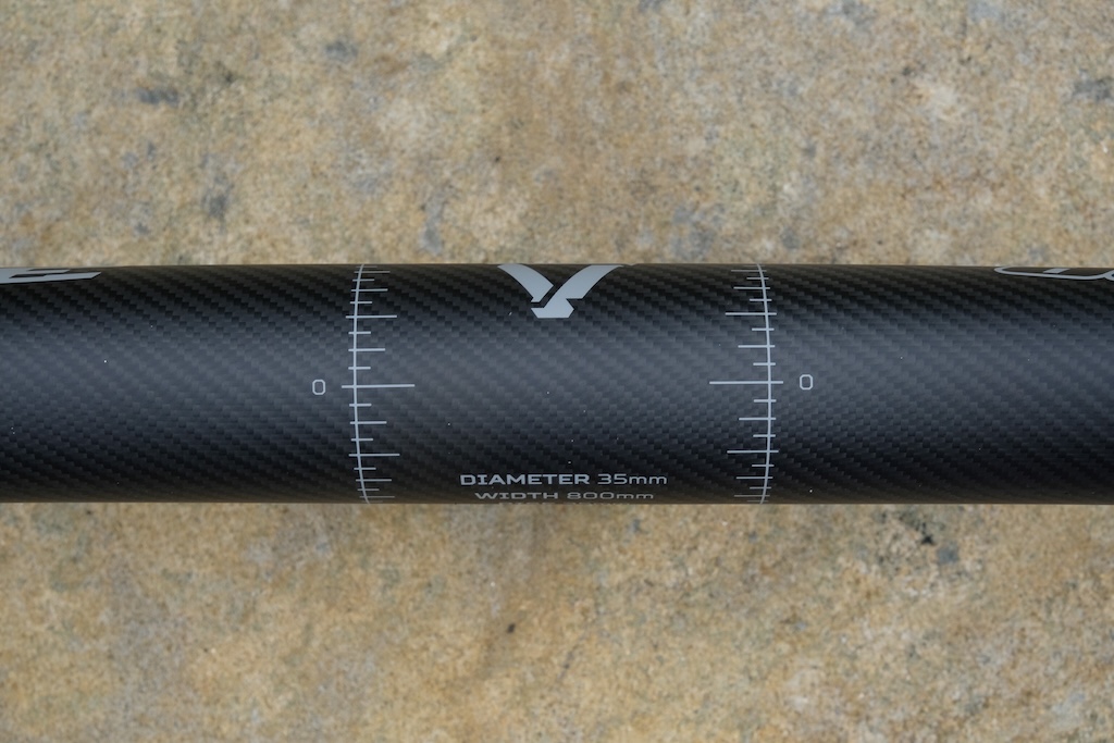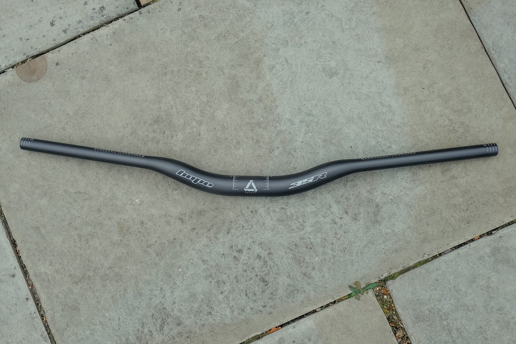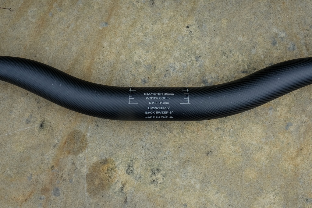 Hope’s carbon bar is finally available in a higher rise (35mm) option. 800mm wide, cut marks for custom, 5° upsweep x 8° backsweep, 245g, laminate design with varying wall sections for “enhanced material efficiency”, alignment grids for easy clamps setup, and apparently a “fully recyclable manufacturing technique”. Which is nice.