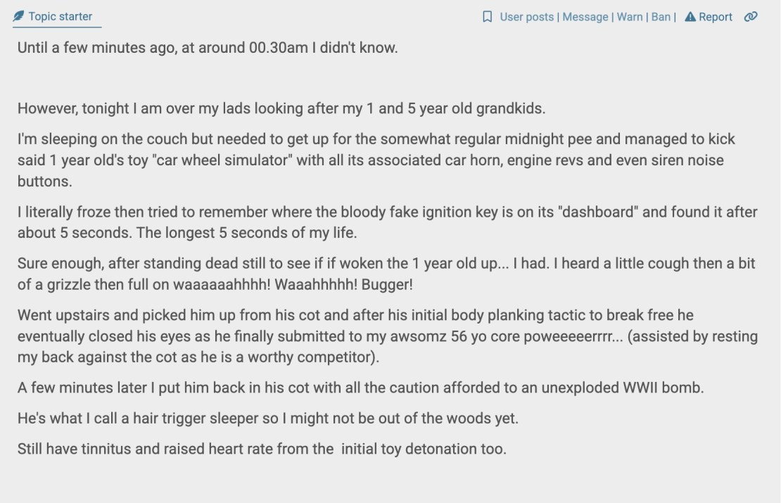 2. Any parent knows the WWII bomb style of putting a young one back in their cot. NOBODY MOVE OR MAKE A SOUND!