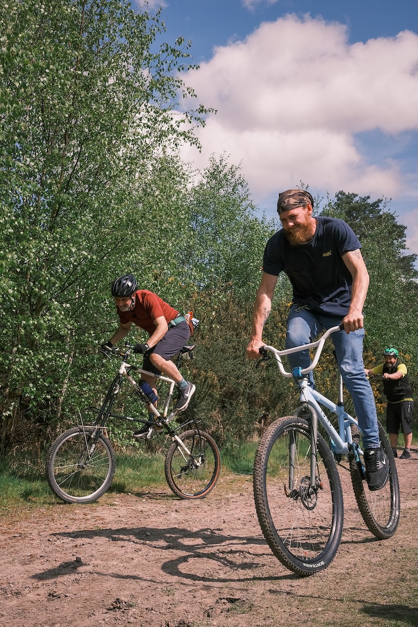 There’s a great quote from one of the Zenga brothers in their film Tall Bikes Will Save The World: “The ridiculous nature of it became ridiculously practical. And all of a sudden, I’m like, it’s the only bike I want to take to the grocery store. It’s the only bike I want to tour the world on.” Feel the joy and hang on Tall bikes aren’t pointlessly silly – they’re joyfully silly. They reignite our childlike instinct to try something just because it looks fun. They make us solve problems creatively: if we can’t put our foot down, what do we do at a junction? Well, maybe we coast in a wide arc, hold onto a lamp post, or just trust gravity and improvise. When it comes to riding off-road, it only adds to the challenge. Jon mentions: “You have to concentrate on the trails, including low-hanging branches! There’s an extra little frisson of interest when an innocent dab could place a top tube in your lunchbox.”