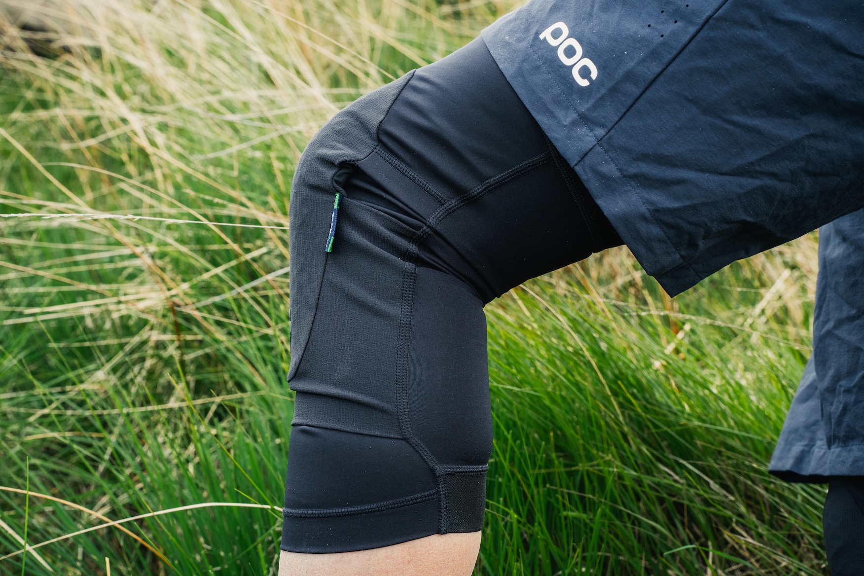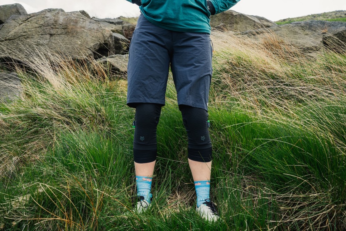 The D3O-alike Koroyd feels more flexible than D3O and moulds well to the shape of your knee. Protection wise, Koroyd pads seem to be very similar to D3O ones. These Enduro Pros are held up by a single broad band of silicone gripper dabs around the upper thigh. The calf strip has no silicone, just the stretch of the Lycra seam. The fabric sleeve is pretty substantial, and starts relatively high (and /finishing low) on the leg. I have found that the silicone gripper is a bit much for my thighs – maybe it’s in part because they sit higher, and on more sensitive skin. Maybe it’s also because there’s such a broad band of silicone. But I do find myself feeling relief when I get to peel these off, which is sad because I found the old version so comfortable. On the plus side, these do stay up without any need for hitching and adjusting, so I guess that gripper is doing the job. In cooler months, the heat of these pads is not such an issue. If you were sad that you ripped your mesh backed kneepads on your pedal pins, you might be happy at this new and more robust design. Overall: flexible to pedal in, stay up well, robust against pedal pins, long sleeve area, some may not like the silicone gripper and they’re better suited for cooler temperatures.