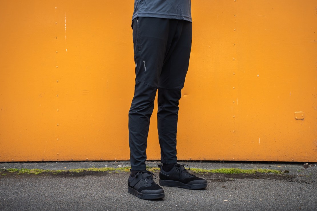 These are the riding trousers that I wear most of the time. This is because they are ideal for cool temperatures with a degree of spray on the ground and precipitation from above. During these most-days-of-the-year riding conditions, I really appreciate how ‘invisible’ Flux DWR trousers are to wear (especially with knee pads underneath). Light, so they don’t droop when wet. Very tapered, so they don’t flap about. This close-fitting nature makes them easier to pair (with consistent performance) with other garments, depending on the humidity levels outside. Essentially, these pants are my ‘constant’ clobber that gets paired with varying socks, knee pads and liner shorts depending on the day’s weather. As with all DWR garments, the waterproofing wears away eventually, but these pants remain windproof, which is the more important factor for me.