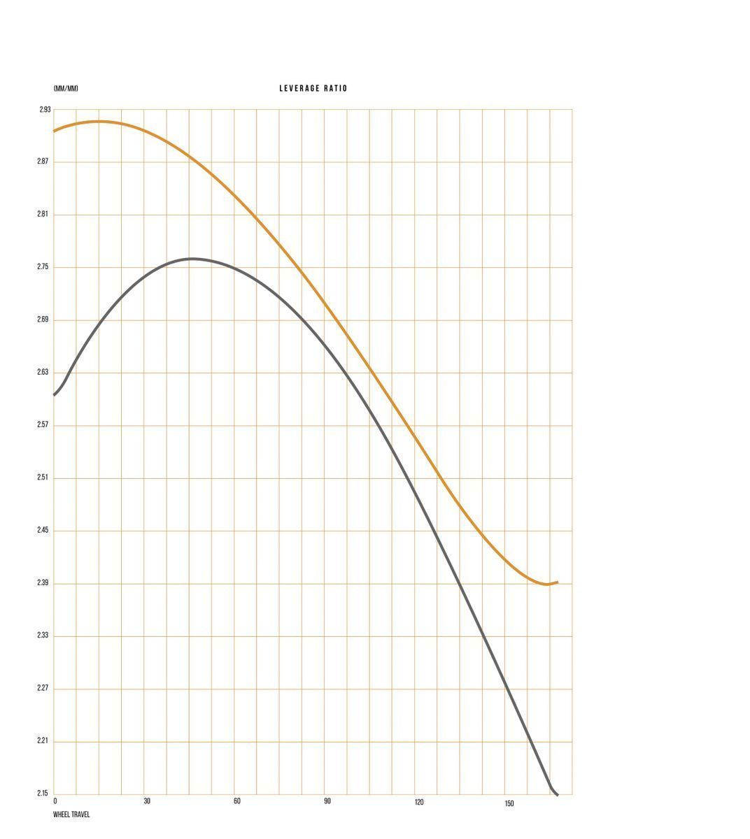 Whether this is suspension frame leverage or air springs, I rarely get along with curves that aren’t consistent. I can get them to function okay but in a world where most riders (understandably) don’t want to spend hours and hours setting up a pushbike, these curves are often a recipe for extremely poor bike setup and thus handling. The marketing idea of ‘supple at sag, rampy at the end’ is not what a lot of riders end up sat on.