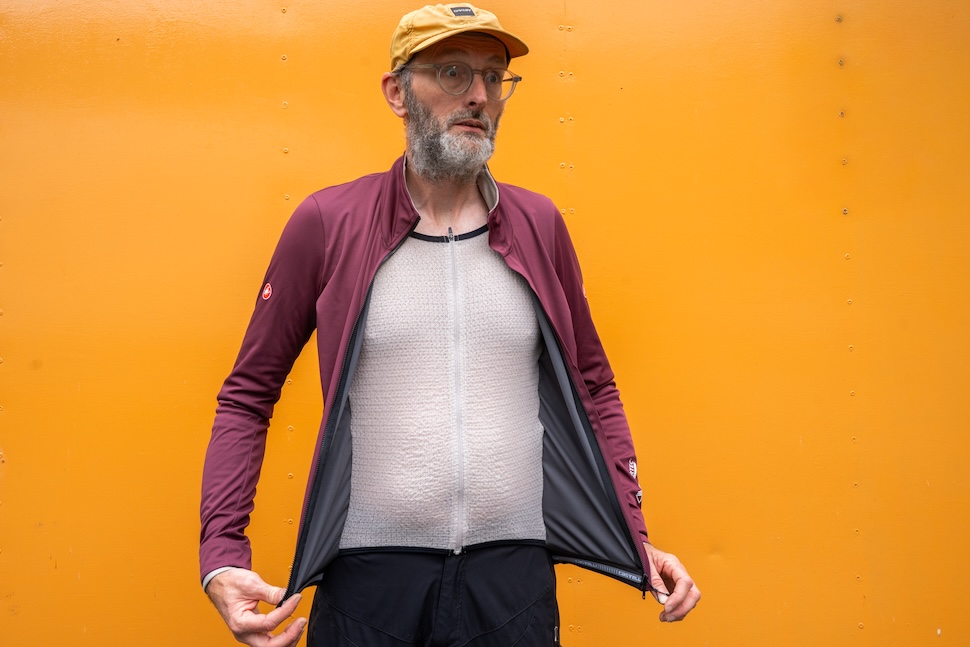 A rather fancy jersey – sorry, jacket – from Castelli. I’m partial to a close-fitting softshell during autumn/winter, for use a midlayer with a thin shell or gillet over the top. The dropbar aero gang may wish to just wear this Alpha 150 as an outer layer. Made entirely from windproof, water-repellent and highly breathable Polartec Air Core softshell material. What’s to like about this garment, aside from the Deep Bordeaux colour? Big collar. Draft excluder cuffs. Rear pockets. Very handle key/multitool pocket on front-left. The inner ‘waistcoat’ is made from super cute ‘n’ cosy Polartec Alpha. It’s PFC-free, has high recycled content and is made in Europe, for those who care about such things. What’s not to like? It’s basically three hundred quid. Still, will probably outlast and outperform multiple so-called waterproof jackets that we all keep wasting money on.